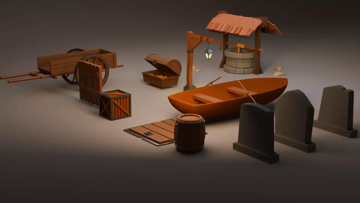 A pack of medieval assets that made on blender and common items for medieval lowpoly gamesNo overlapping vertex, no bad topology