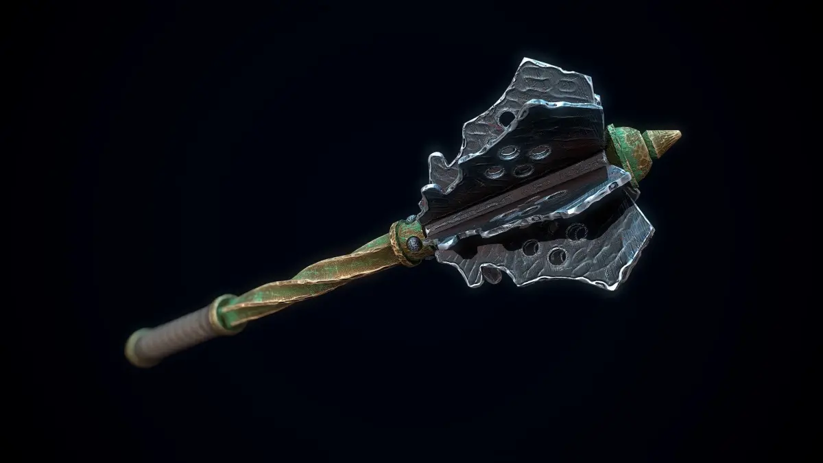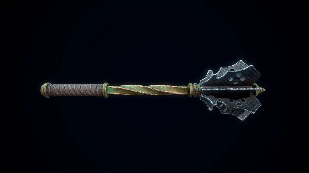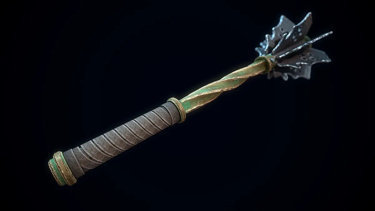Low-poly 3D model of a Medieval Mace doesn't contain any n-gons and has optimal topology. The archive includes such 2K textures: base color map, metalness map, normal map (OpenGL), and roughness map. Images and video were rendered in Marmoset.