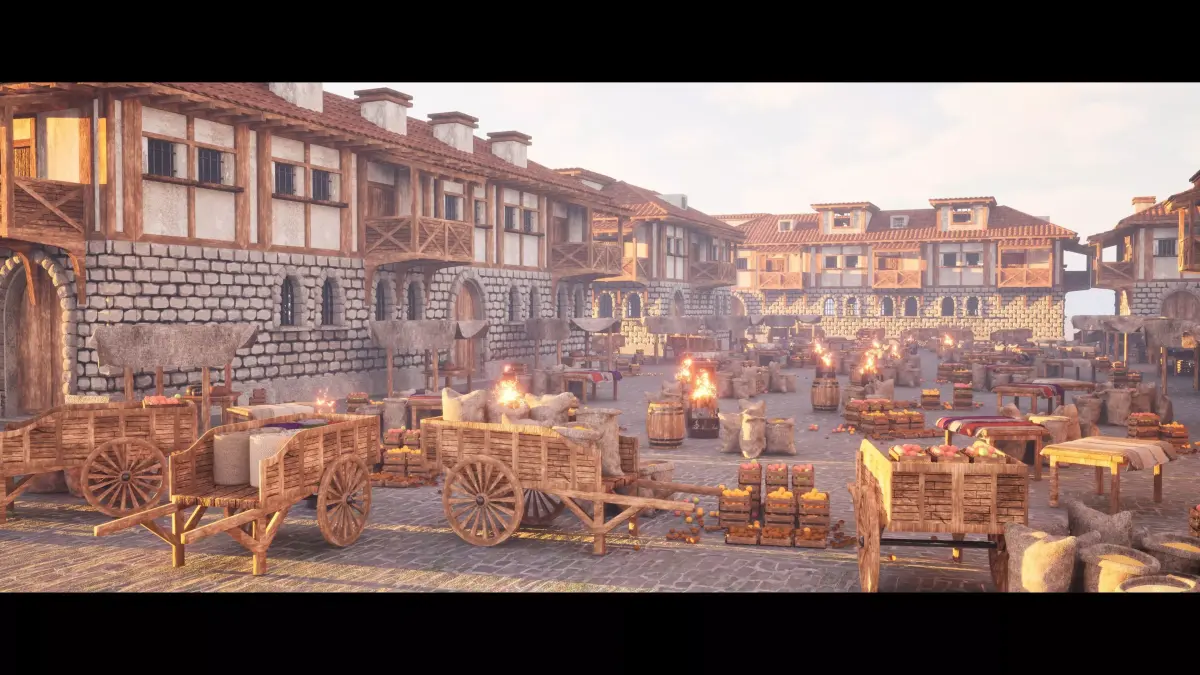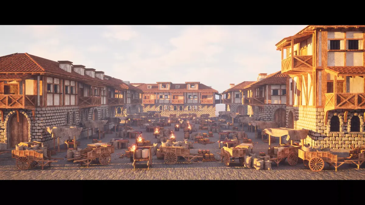 This Medieval Market & Bazaar Props Kit is a detailed environment asset pack designed to populate medieval towns, villages, and marketplaces with believable, hand-crafted props.