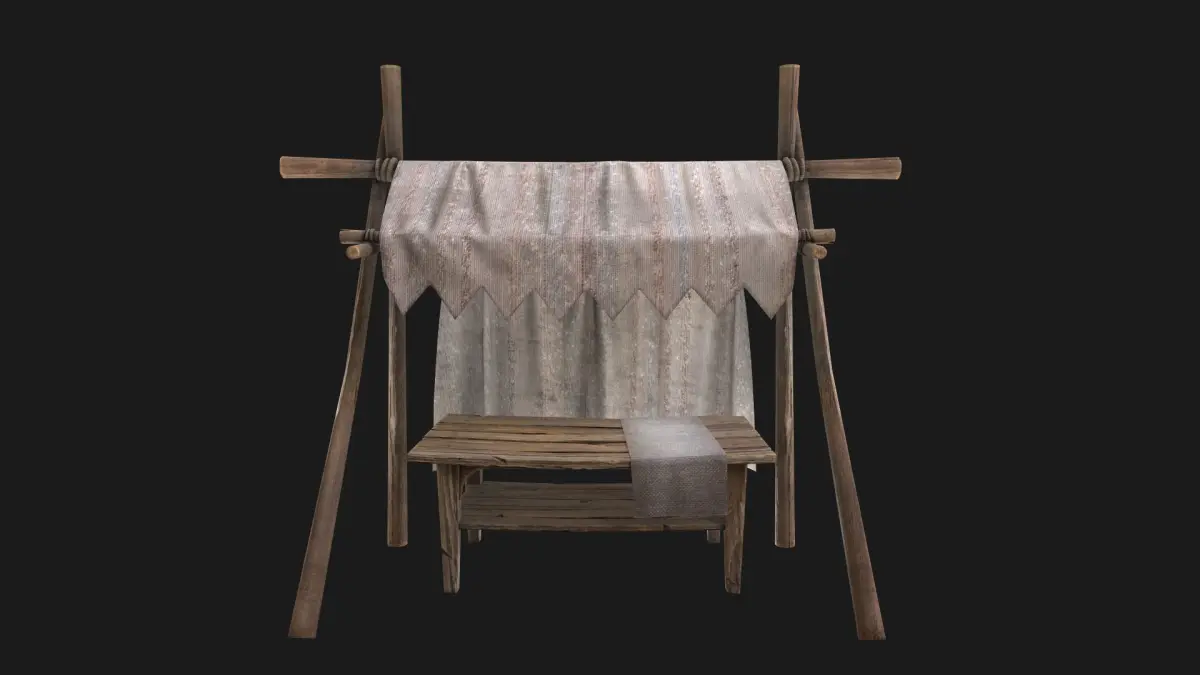 Game ready model. Market Stalls fully textured, sculpted and rendered with Physical based rendering (PBR) - Shown images have been rendered in Marmoset Toolbag .The models contains lods, detailed information on the images.The model consists of two UV Maps :Table(4096x4096),Tent(4096x4096).