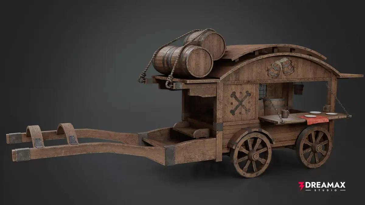 Medieval Merchant Cart – Detailed Market Wagon | PBR | 4k Textures