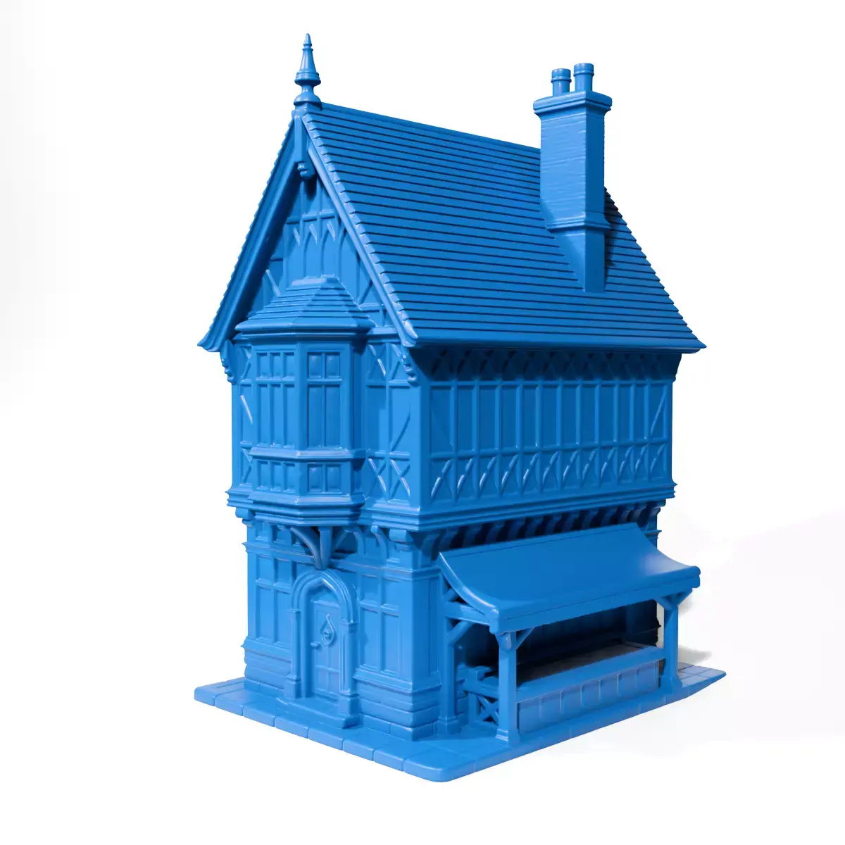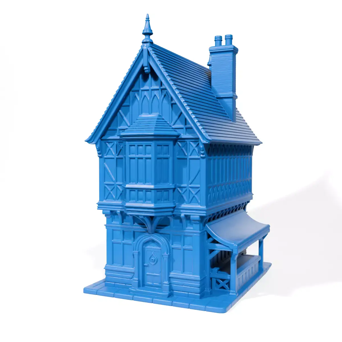 The Medieval merchant's house is designed to capture the essence of historical architecture with intricate details reflecting classical merchant dwellings.