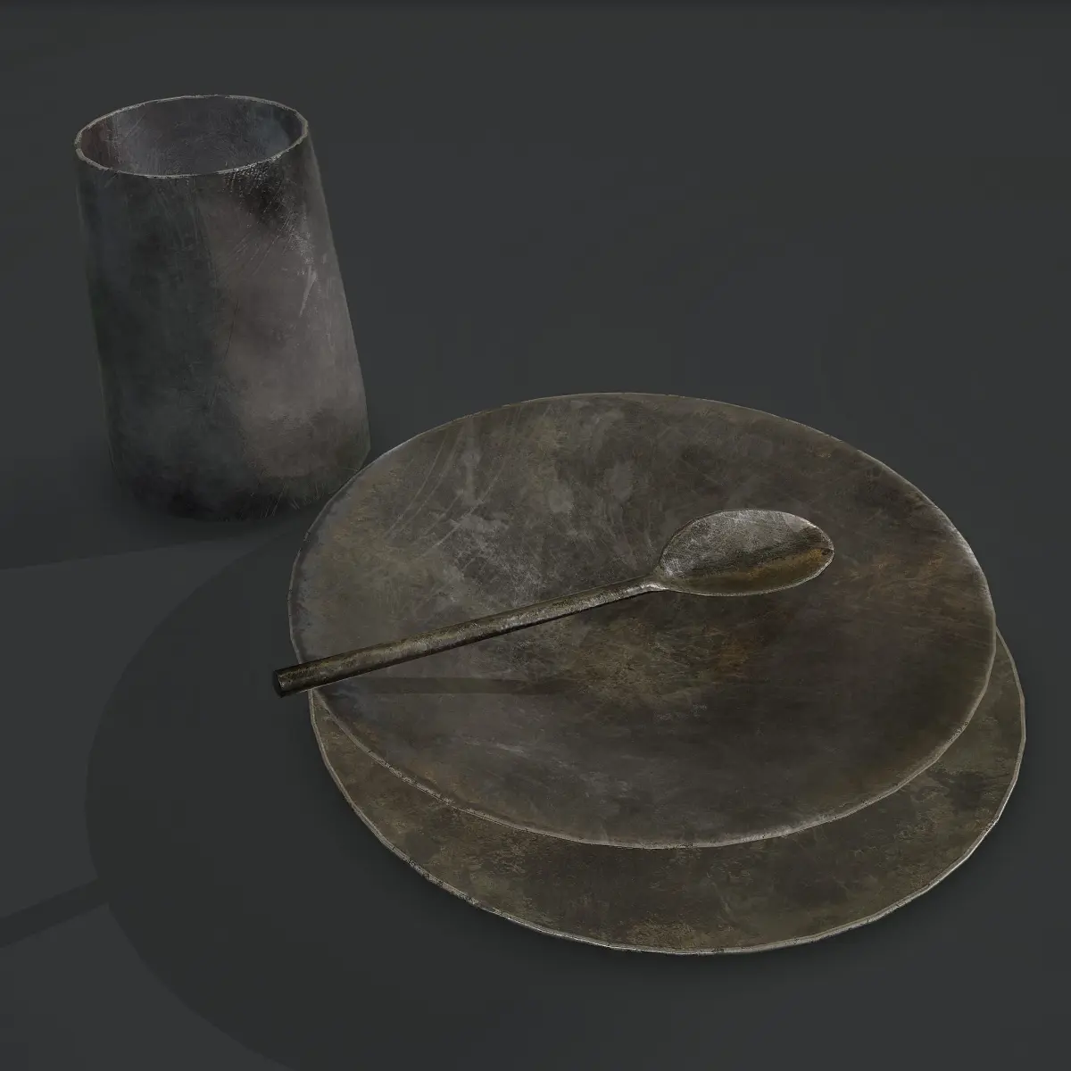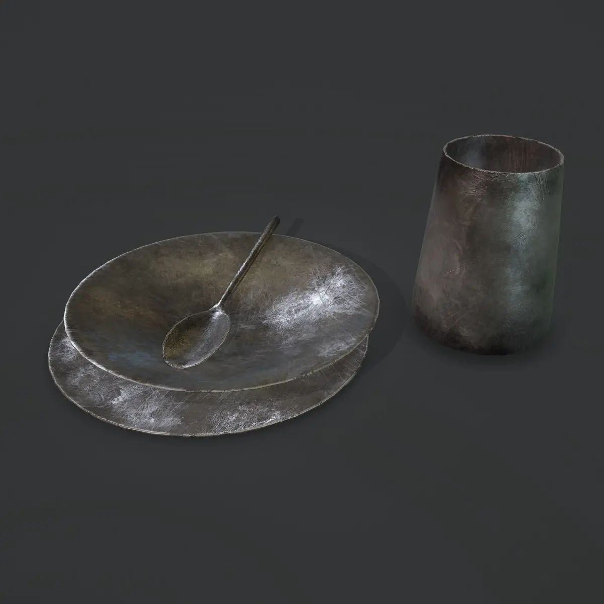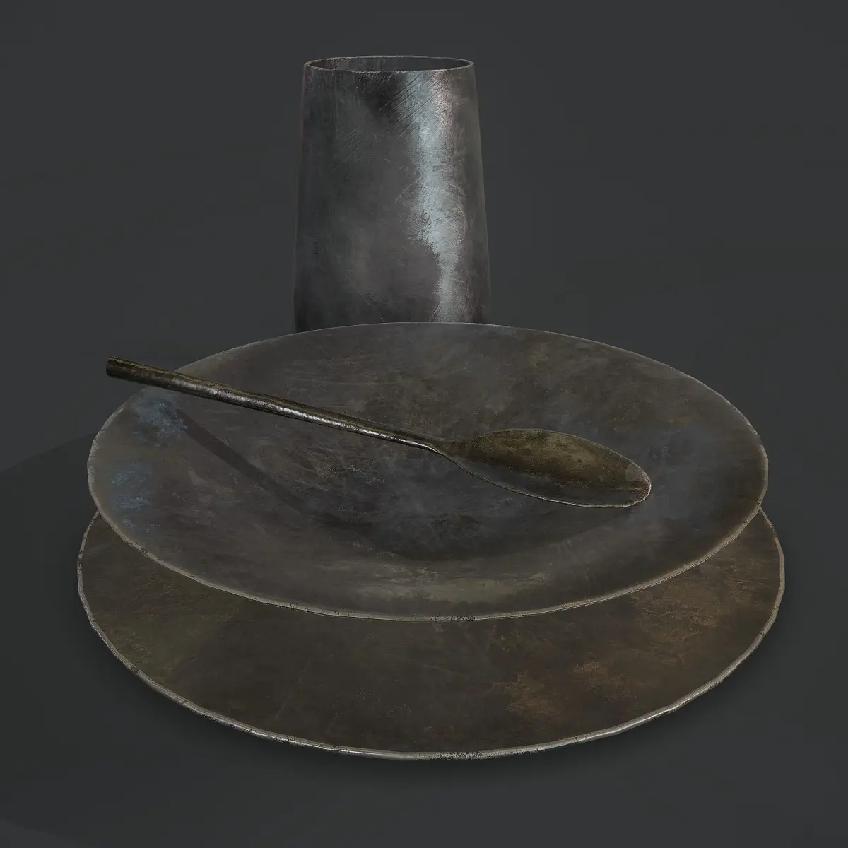 Medieval Metal Dishes 3D Model. Texture Maps Include : Basecolor, Normal, Metallic, RoughnessTexture Available in 2048 x 2048 and 4096 x 4096 All Preview Renders were done in Marmoset Toolbag 3.08Customer Service Guaranteed. From the Creators at Get Dead Entertainment Please Like and Rate! :)