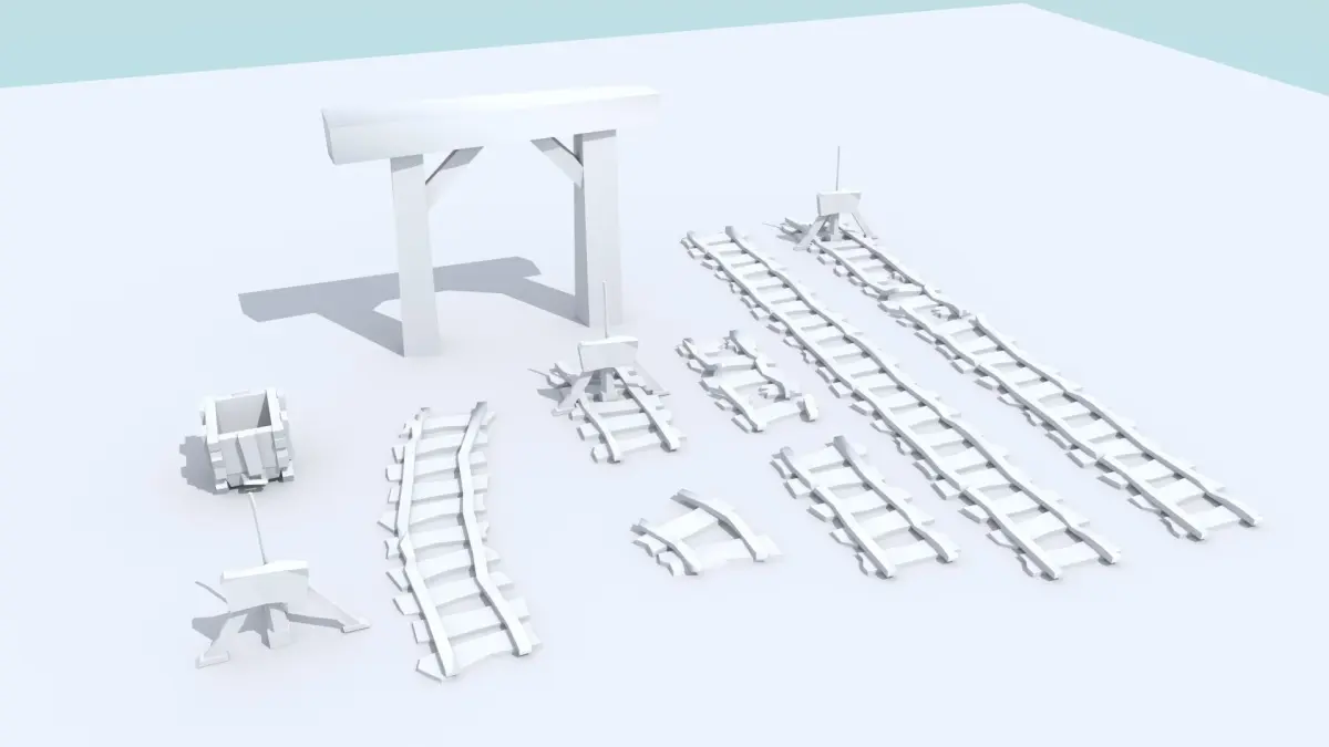 Vert/Poly CountMine Cart - 206/328Shaft Support - 42/48Track 1 - 137/181Track 2 - 223/311Track 3 - 258/354Track 4 - 78/104Track 5 - 682/987Track 6 - 502/712Track End - 233/326Stopper - 113/165
