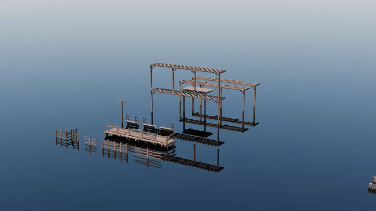 This package is designed to create both a medieval village and the outskirts of a medieval city.