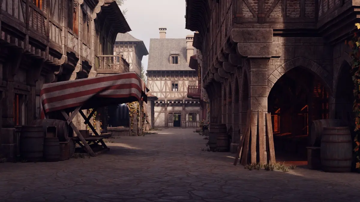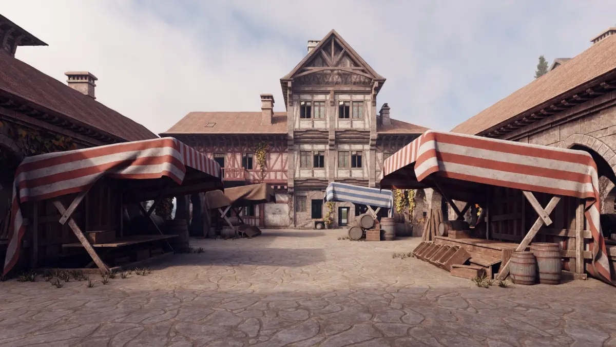 A modular architecture pack, inspired by the traditional Timber Frame houses, with working interiors and props (Tables, benches, beds, tablewear, lamps, barrels, crates, market.).