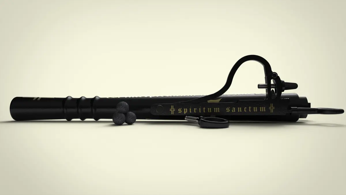 3D-model of medieval monk's gun. Barrel length 286 mm, int. barrel (and cannonball) diameter - 12 mm.