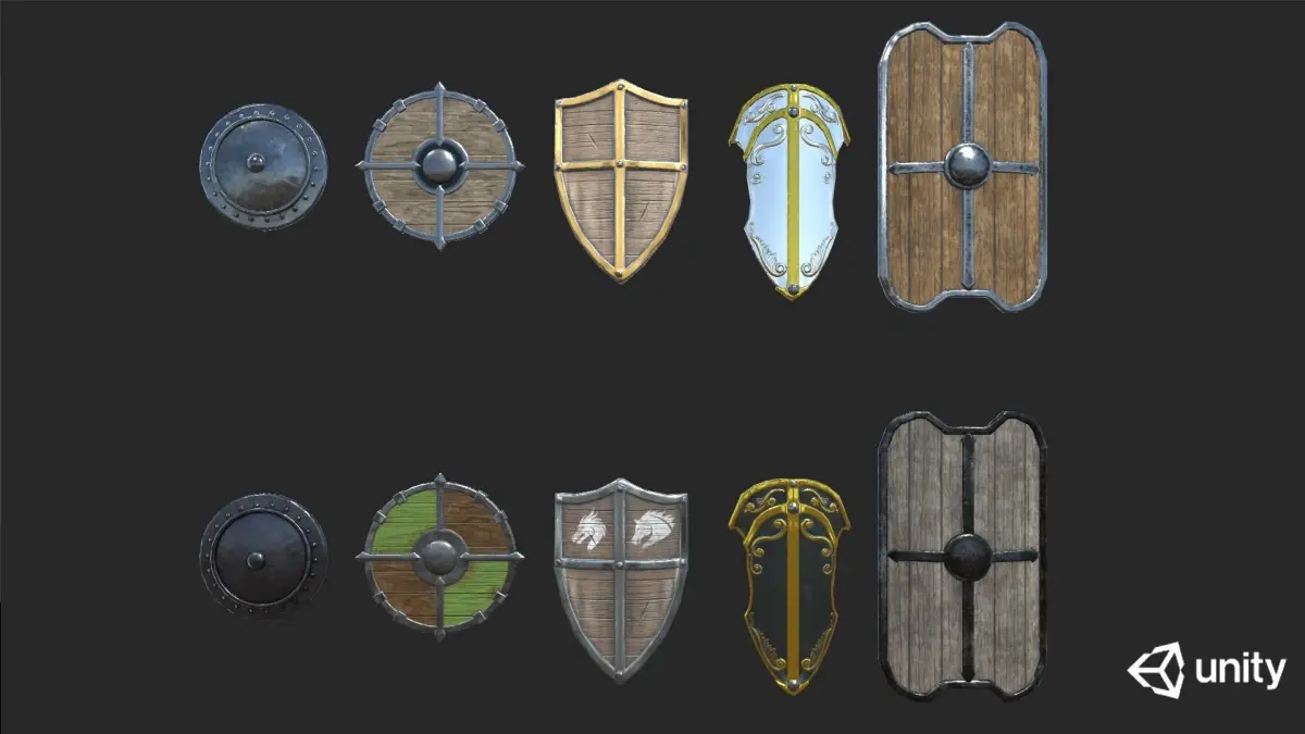 Hi, this is a game ready medieval or fantasy shield pack. Shields are low poly, with PBR textures - albedo, metallic, normal and AO textures. Set contains 5 shields and each shield has 2 texture variations.