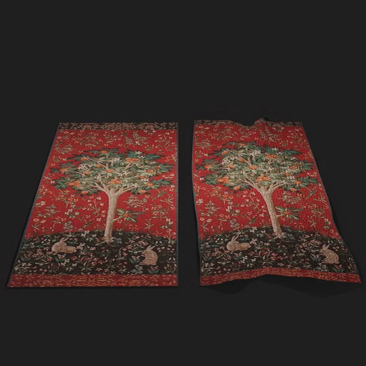 Medieval Orange Tree Tapestry 3D Model. PBR Texture available in 4096 x 4096 Maps include : Basecolor, Normal, Roughness, and Metallic. All Preview renders were done Marmoset Toolbag 3.08 Scaled to real world scale. Includes 2 Models 1 Material. Customer Service Guaranteed. From the Creators at Get Dead Entertainment. Please like and Rate! Follow us on FaceBook and Instagram to keep updated on all our newest models.