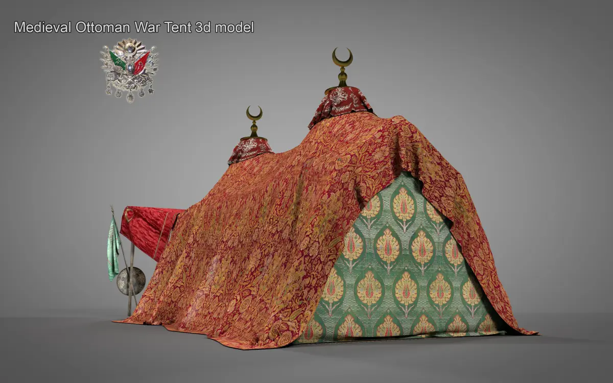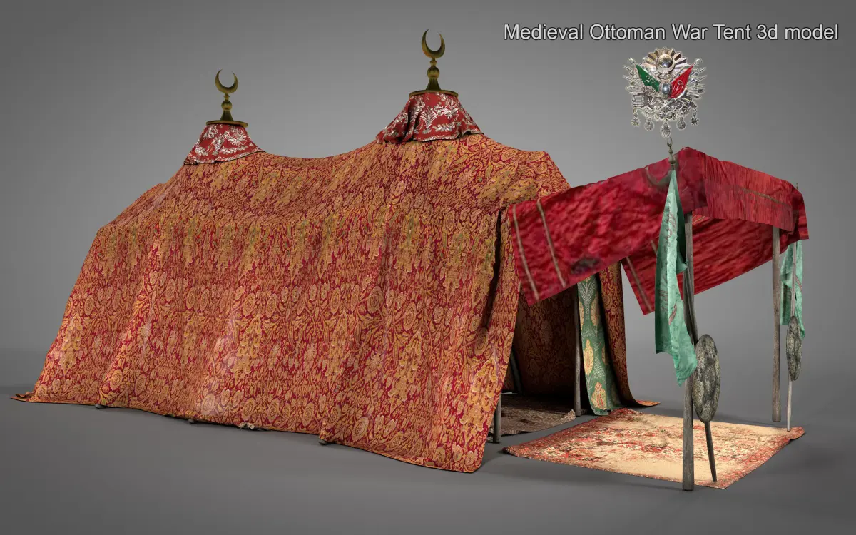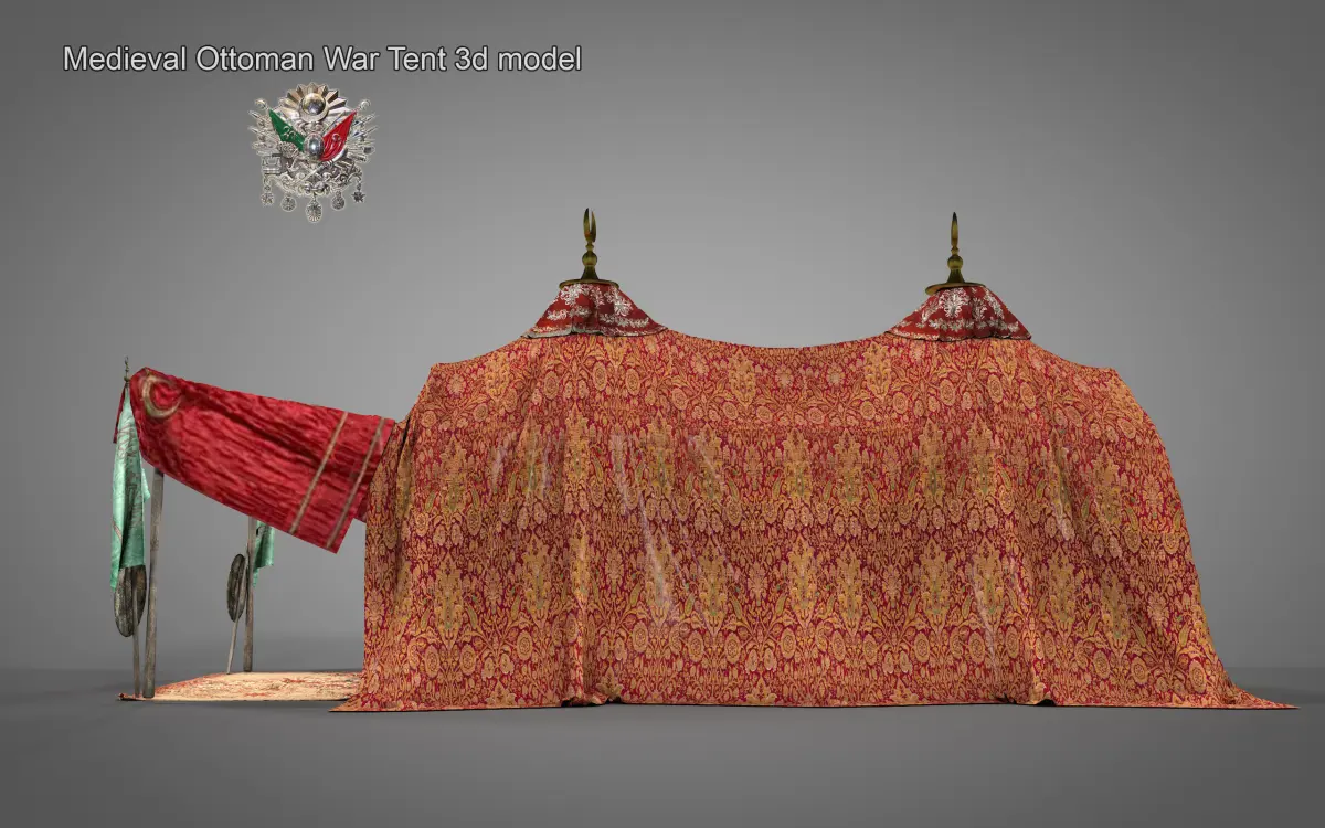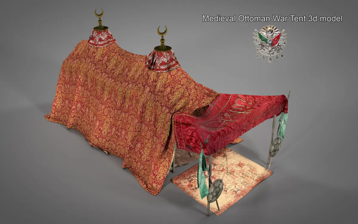 Medieval Ottoman War Tent 3d model.renderable cinema4d file.................war tent..............table.............sofa...............carpet..................flag....................