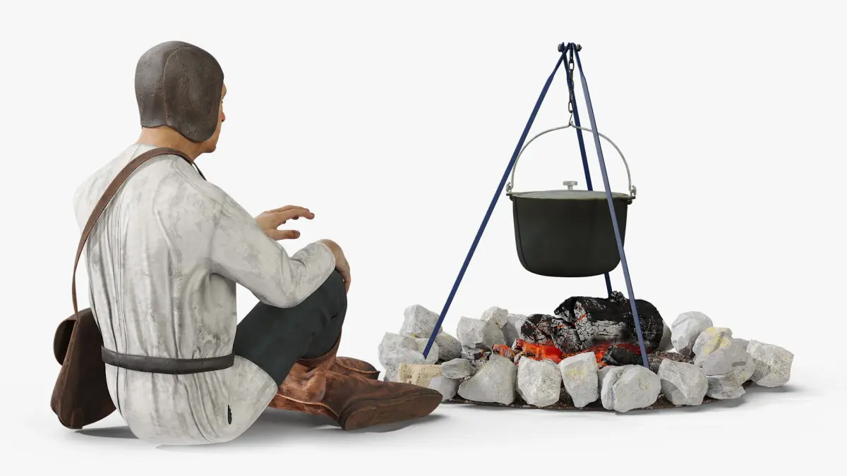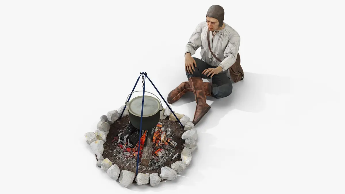 - Campfire with Tripod and Cooking Pot