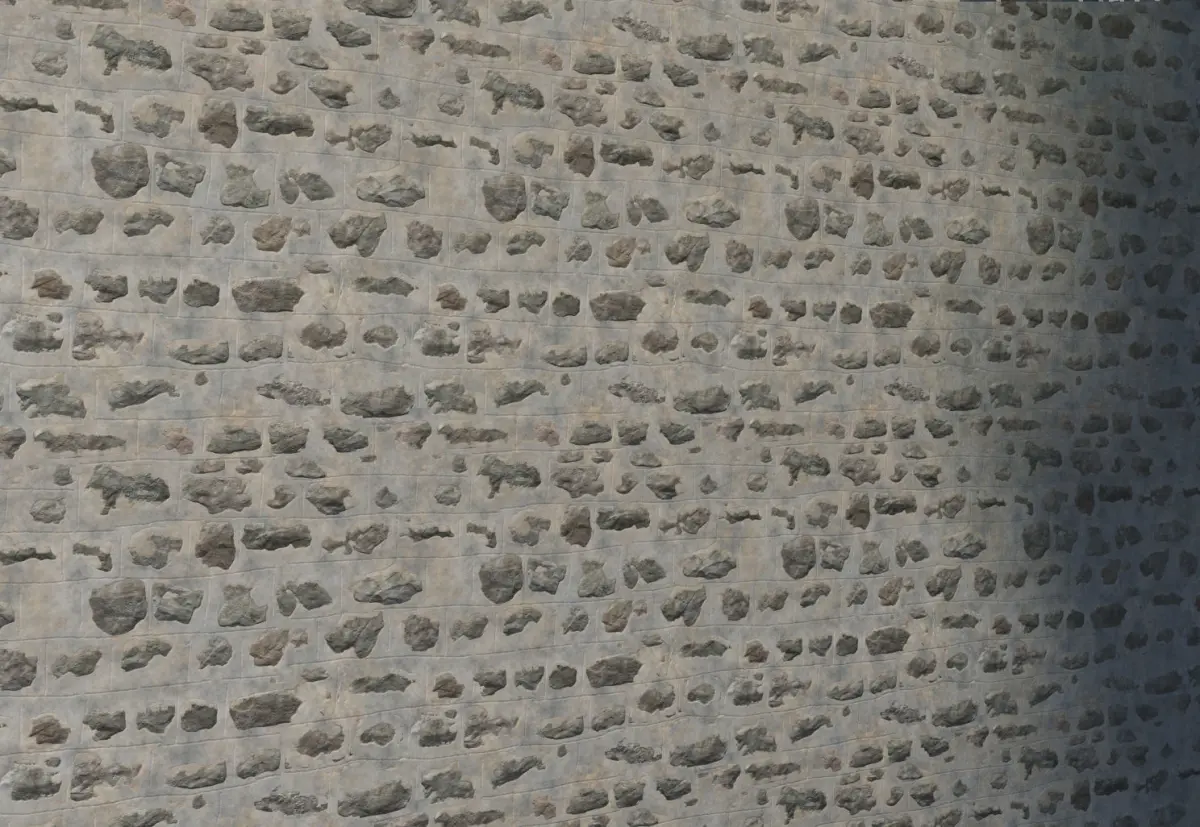 Pietra Rasa is a historical technique for visible walls where field and rubble stones were mortared and plastered. In this process, the excess mortar is spread smoothly on the stone surfaces, but the stone heads remain uncovered and visible. Subsequently, a joint line is drawn or scratched with a trowel into the plaster. It was commonly used during the 11th century in Europe for castle walls of minor status where the drawn line in the plaster should mimic larger stone blocks and should hide the crudeness of the used stone.