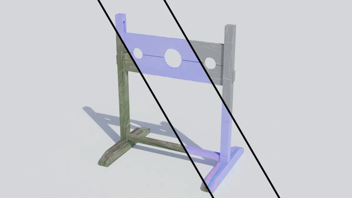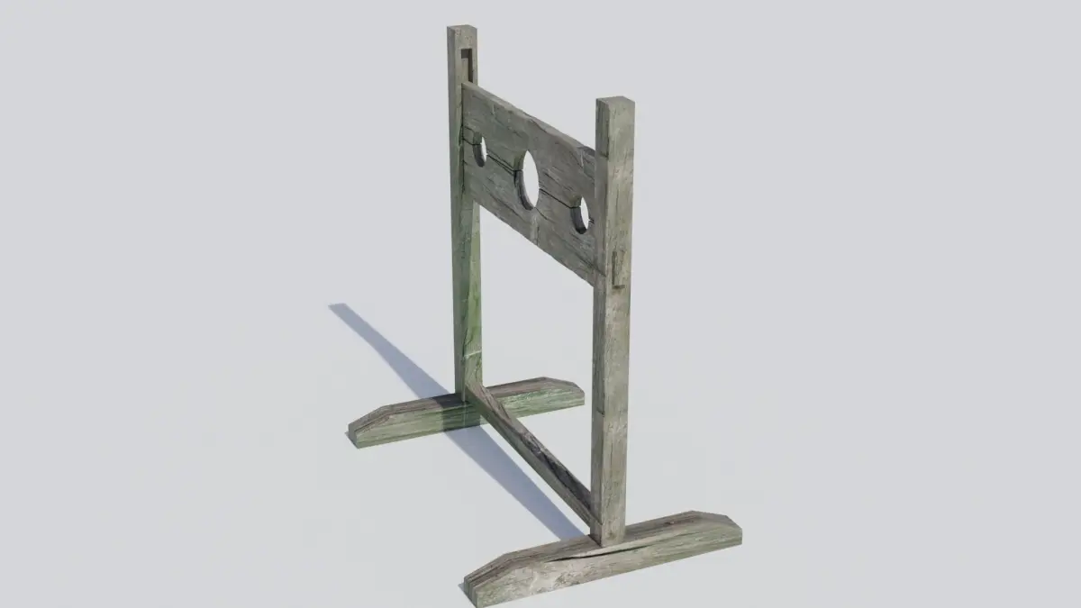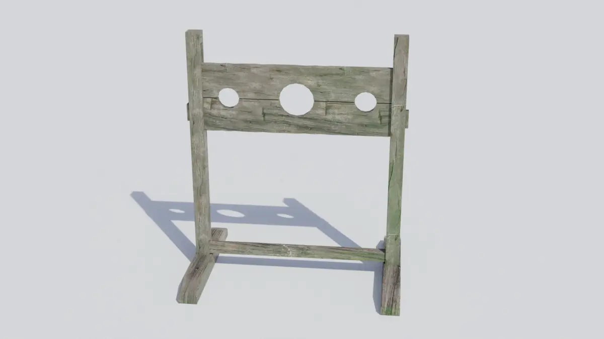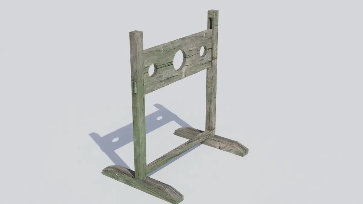 A high quality, realistic model of a medieval pillory with 4k PBR textures (diffuse, roughness and normal maps).