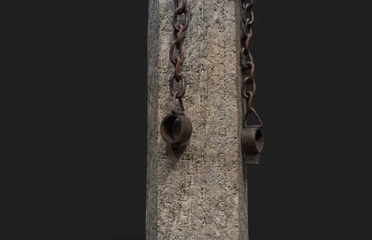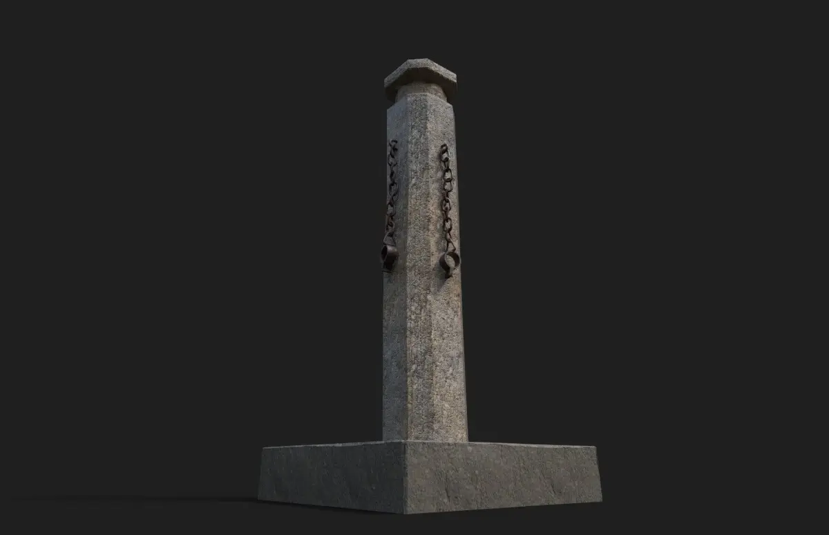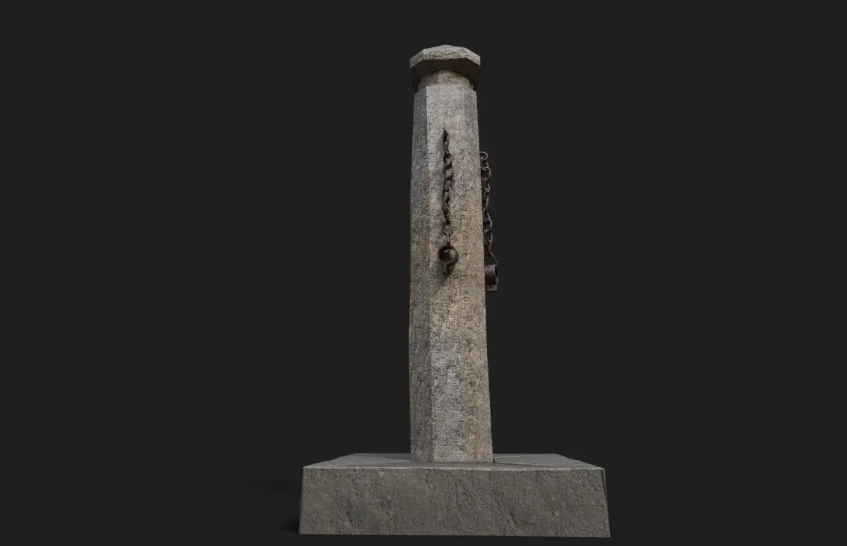 - Pillory pole with handcuffs with stone pedestal. Dimensions: 120 x 120 x 260 cm