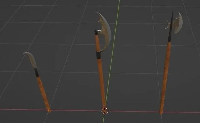 - Bardiche (or Bardiche) with 3300 polygons: A polearm weapon with a wide, curved blade mounted on a long handle, used for slashing, cutting, and delivering powerful blows.