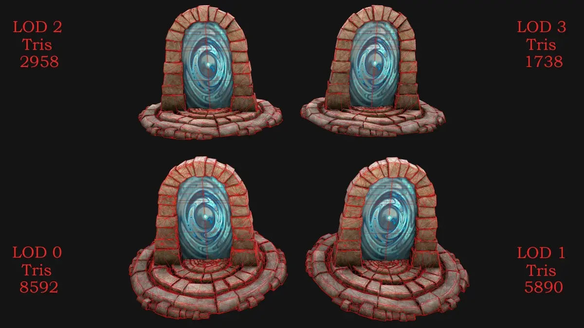 - Edges: 12877(LOD0),8825(LOD1),4427(LOD2),2597(LOD3).