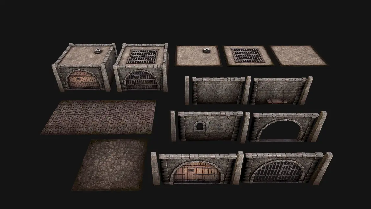 Game ready Constructor .Constructor's set to create a Prison. The set consists of 17 unique meshes for assembly, which includes the following models: prison bed, 2 walls, wall with window, wall with archway, wall with prison bars, wall with wooden entrance, steel door, wooden door, column,roof, grate roof, ventilation pipe roof, 2 prison Structures,stone prison floor,stone paving. The model contains lods, detailed information on the images.Stylized and detailed models fully textured, sculpted and rendered with Physical based rendering (PBR) - Shown images have been rendered in Marmoset Toolbag .Also, the model has a removable roof and if you wish, you can use it without a roof. The kit contains a video instruction for assembling the constructor.