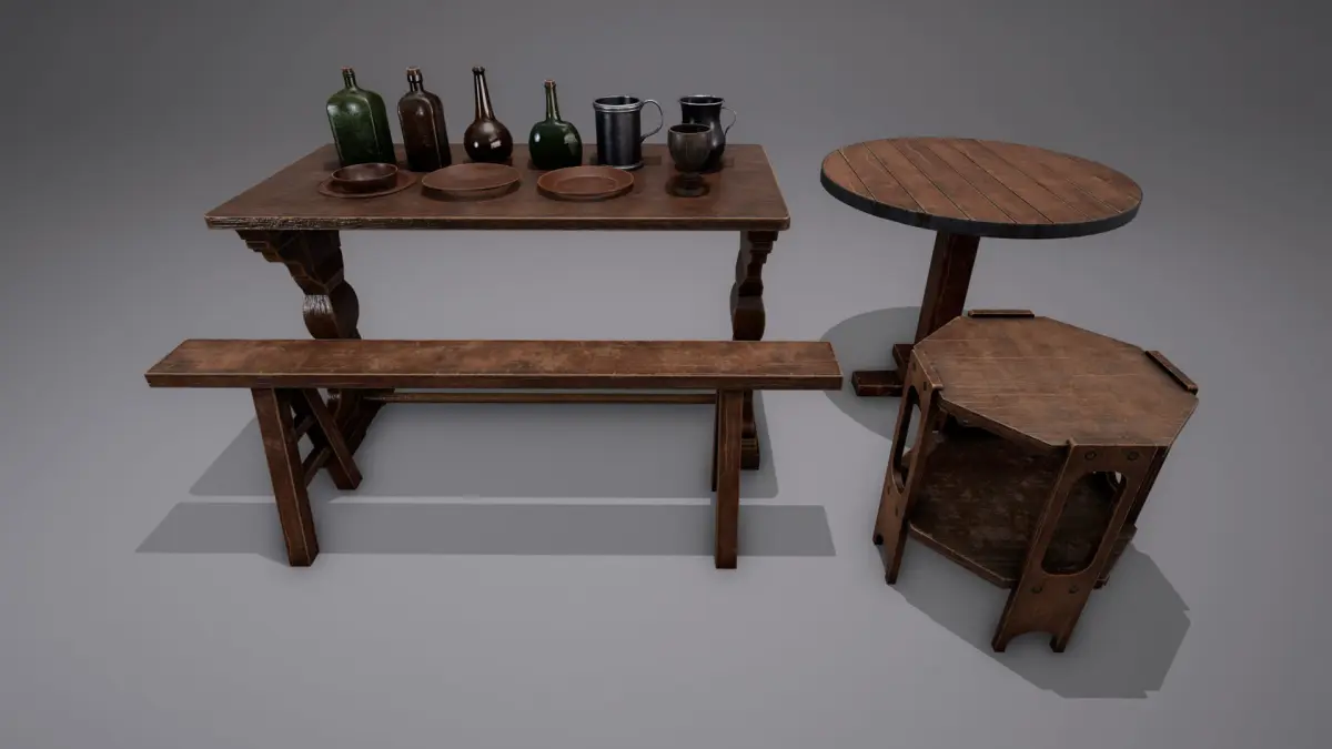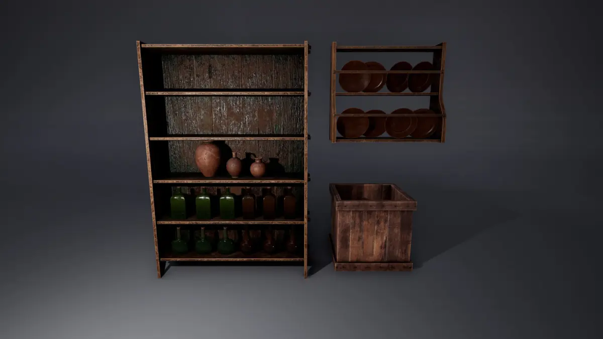 - Shelf, shelf cabinet, bench, wooden box, barrel stand.