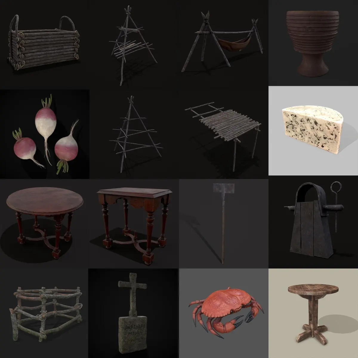 Medieval Props Collection TWO - Models 500-1000 - 3D Model Files Include FBX and OBJ. Includes PBR Texture in 4096 x 4096. Maps include : Basecolor, Normal, Roughness, Height, and Metallic. All Preview renders were done Marmoset Toolbag 4. Scaled to real world scale. Customer Service Guaranteed. From the Creators at Get Dead Entertainment. Please like and Rate! Follow us on FaceBook and Instagram to keep updated on all our newest models. Model can be used for any purpose except resale or redistribution of the asset if not used in a game, commercial or media project.