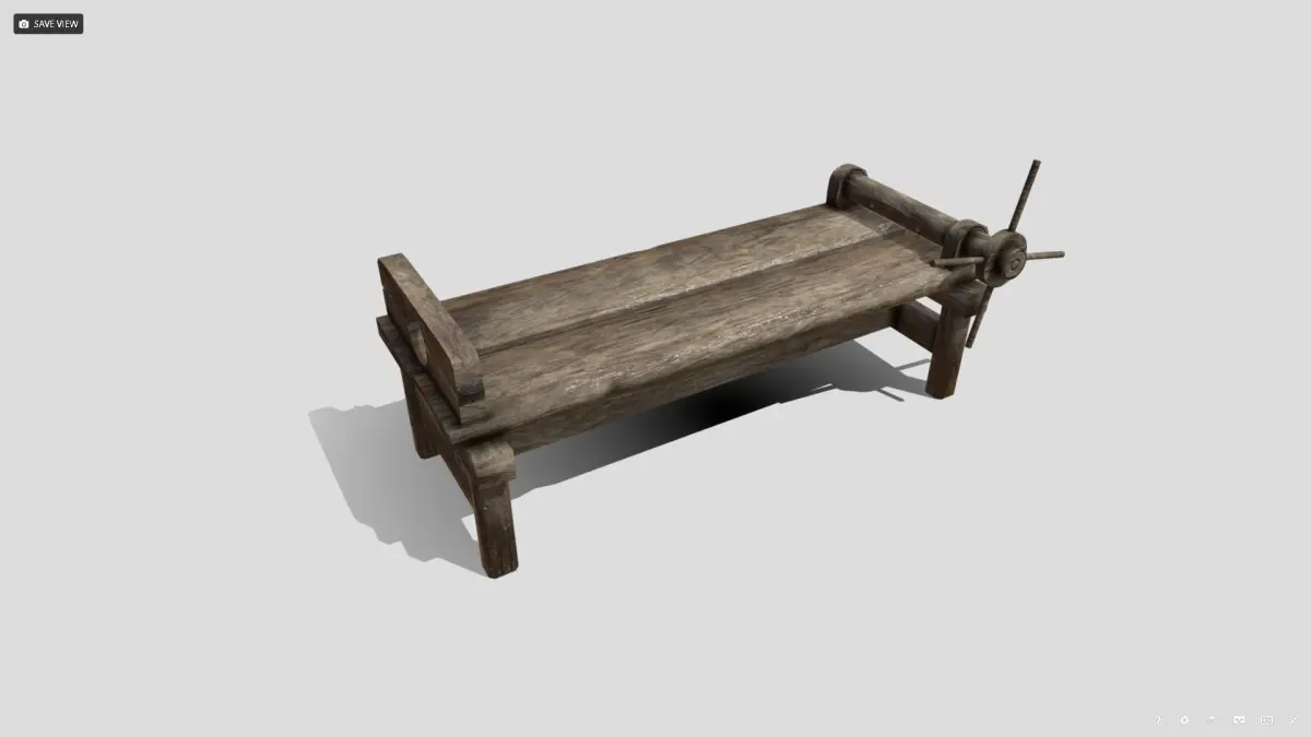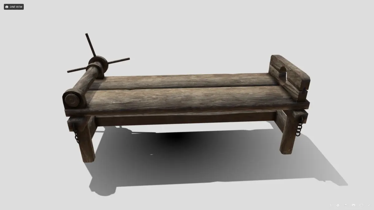 The rack is a torture device consisting of a rectangular, usually wooden frame, slightly raised from the ground,[1] with a roller at one or both ends. The victim's ankles are fastened to one roller and the wrists are chained to the other. As the interrogation progresses, a handle and ratchet mechanism attached to the top roller are used to very gradually retract the chains, slowly increasing the strain on the prisoner's shoulders, hips, knees, and elbows and causing excruciating pain.