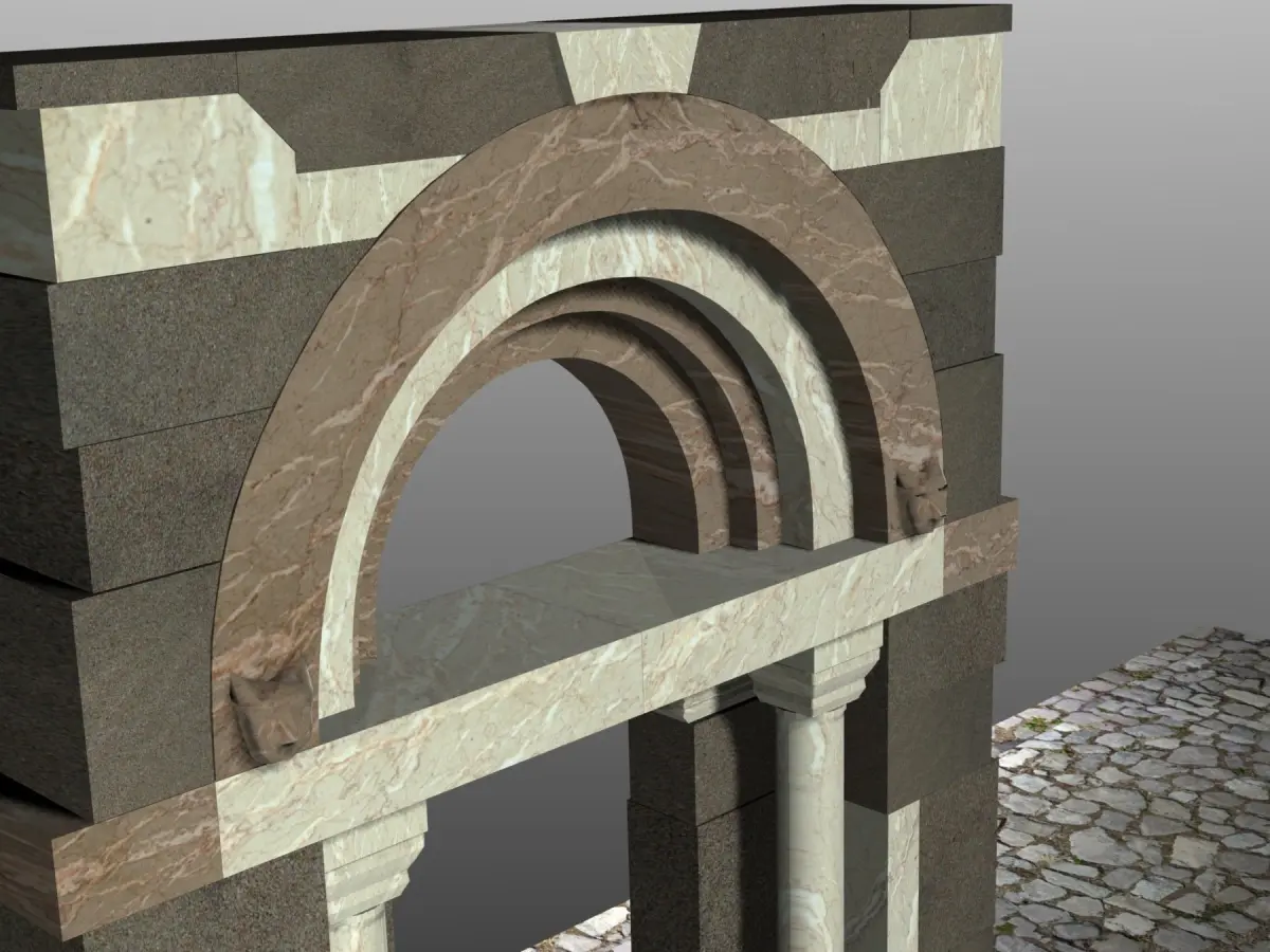 Medieval Portal in italian 'Romanic' style.The particularity of this 3d model is that it is composed with elementary pieces: i.e. with single stone blocks and marble unitary parts.The model has been developed in different formats; all supplied format files include model and textures.Max: model is 0.92Mbytes only, the rest are textures.