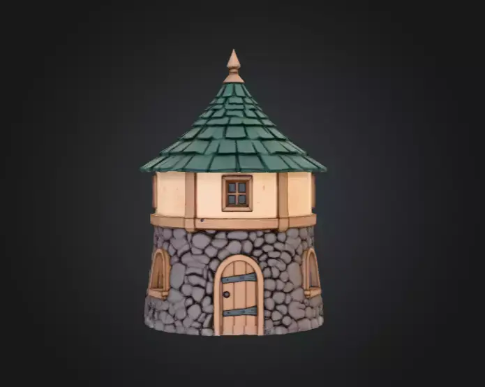 Meticulously designed with hand-painted textures and PBR-ready materials, every detail of this house — from the stone foundation to the curved shingles and wooden door — has been thoughtfully sculpted to deliver both charm and realism. The color palette blends earthy tones with soft highlights, giving it a welcoming and storybook appeal ideal for fantasy RPGs, stylized games, animations, and world-building projects.