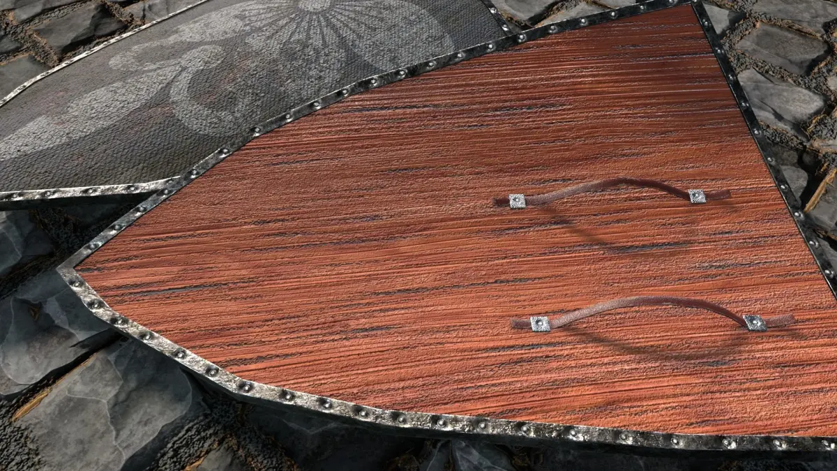 This 3D model is a medieval shield with a coat of arms, created for lovers of history and role-playing games. The shield has a round shape and is made of wood with a metal rim. The shield depicts a beautiful coat of arms of a medieval knightly order, decorated with blue and yellow elements. The model has high detail and realistic textures that give the impression of a real medieval weapon. This 3D model is ideal for use in games, animations or as a decorative element in your interior.