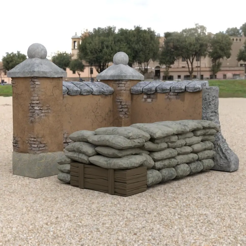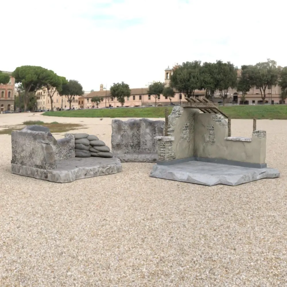 A set of medieval-style ruins. What's in these castle ruins or the wrecked doorways or the destroyed walls? It`s up to you!Also works great for military scenes.