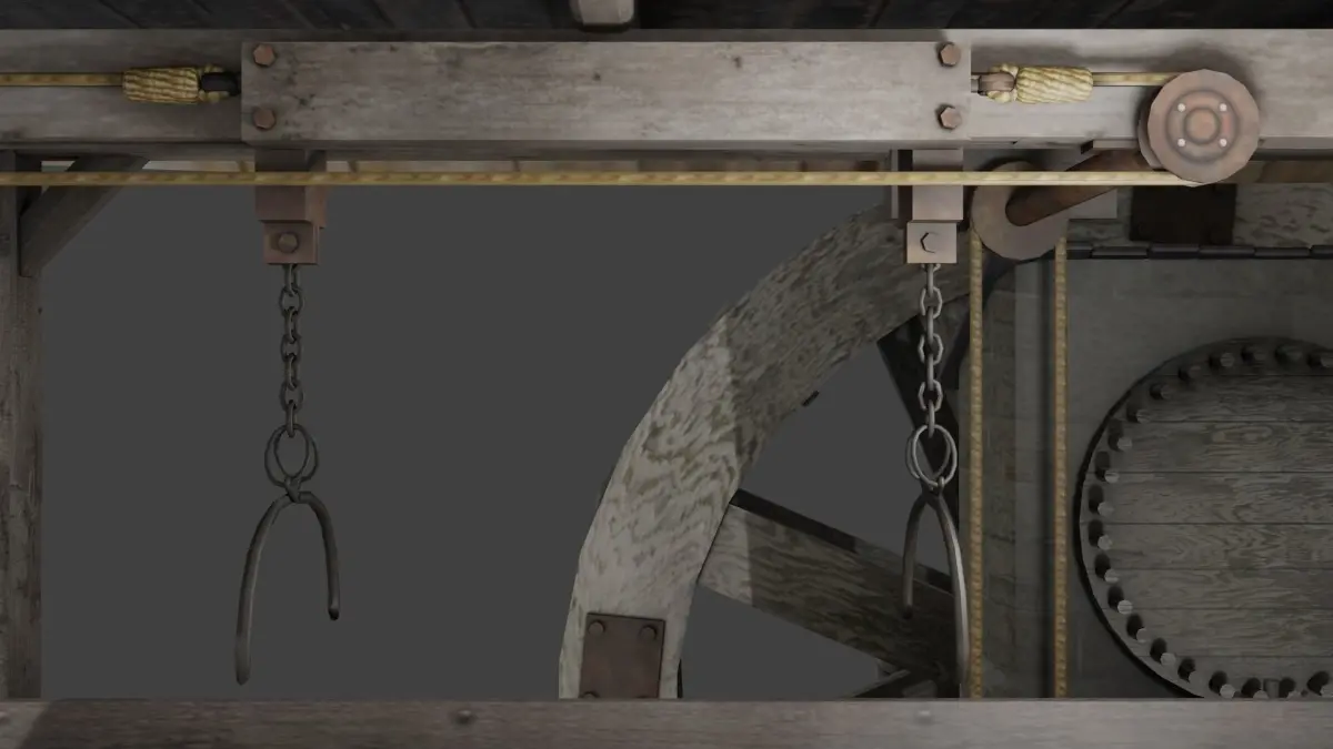 I added a decor in the form of sawdust under the cutting bench and a pile of sawn timber. There is plenty of room inside the sawmill for your extra items.
