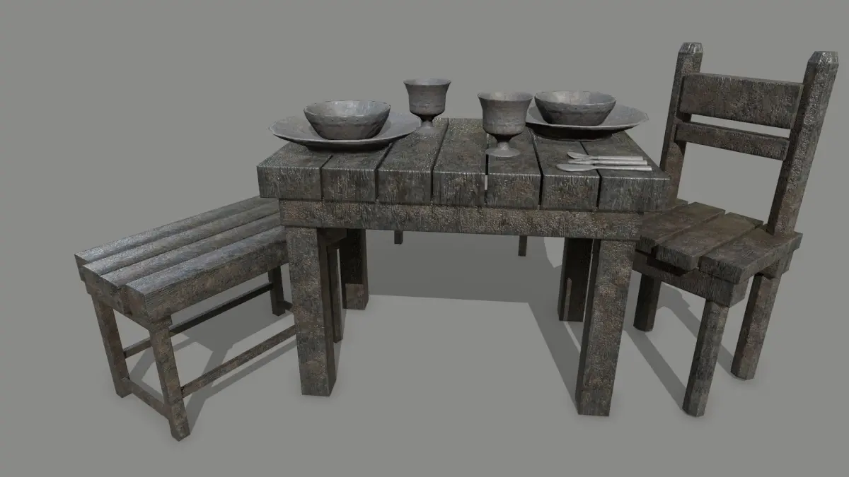 Home Catalog Medieval Set wooden chair Low-poly 3D model