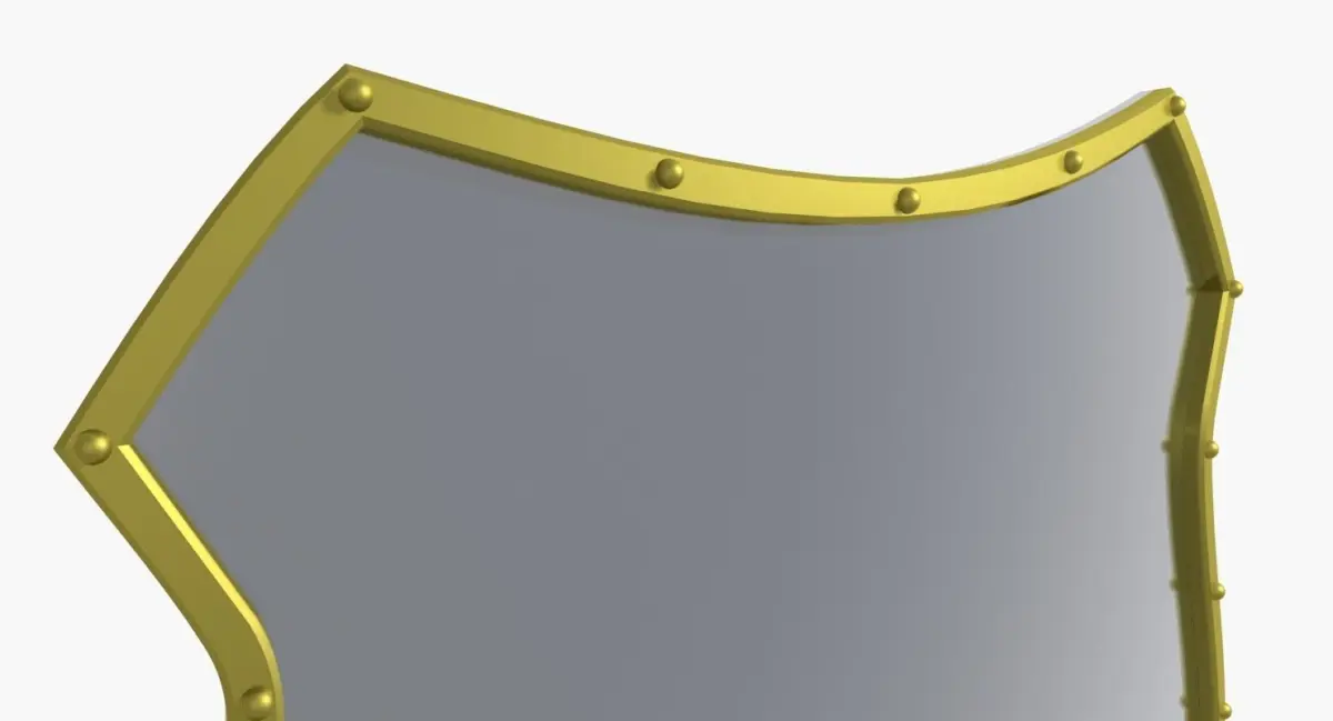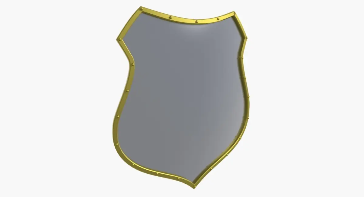 A medieval shield of classic shape. Raytrace procedural brass and polished steel materials are provided and applied to the model; please note that the main armor part of the model has its own materials ID for easy placement of a crest (see the Example of Mapping render for further details). The model is in several parts which are grouped together.