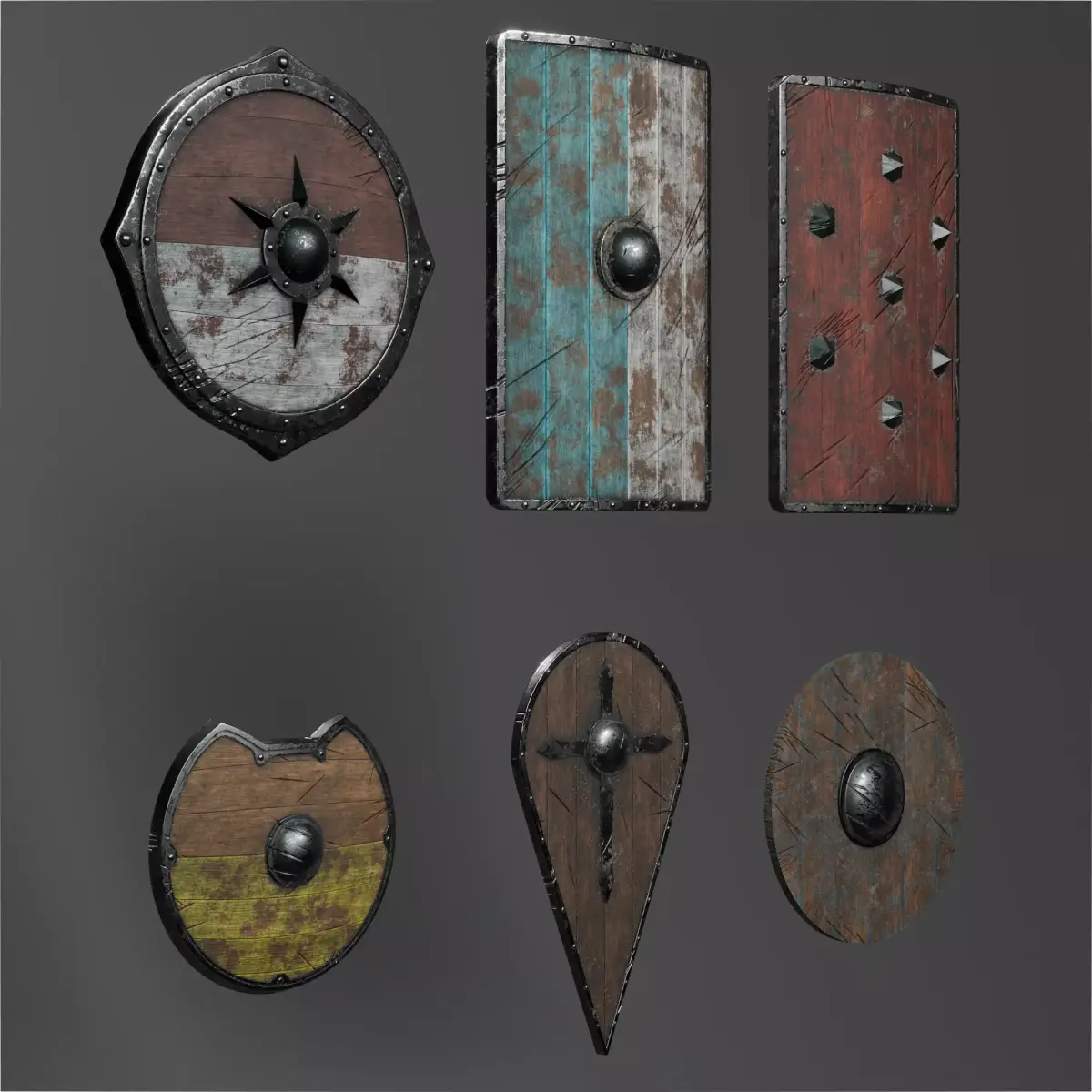 Bring historical authenticity and rugged realism to your digital projects with this premium collection of 6 unique medieval shields. This asset pack is meticulously designed for high-end cinematics, concept art, and detailed architectural visualization. Each shield tells a story of past battles through realistic wear, impact marks, and weathered textures.