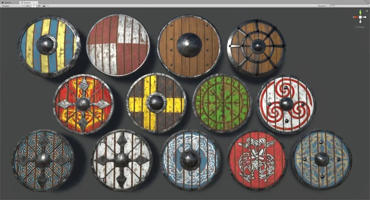 49 game ready ( VR too ) shield model with pbr texture, few shields have texture variations.