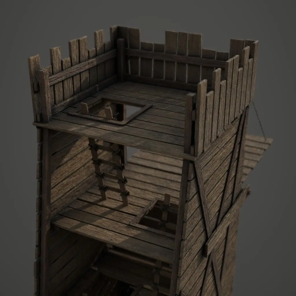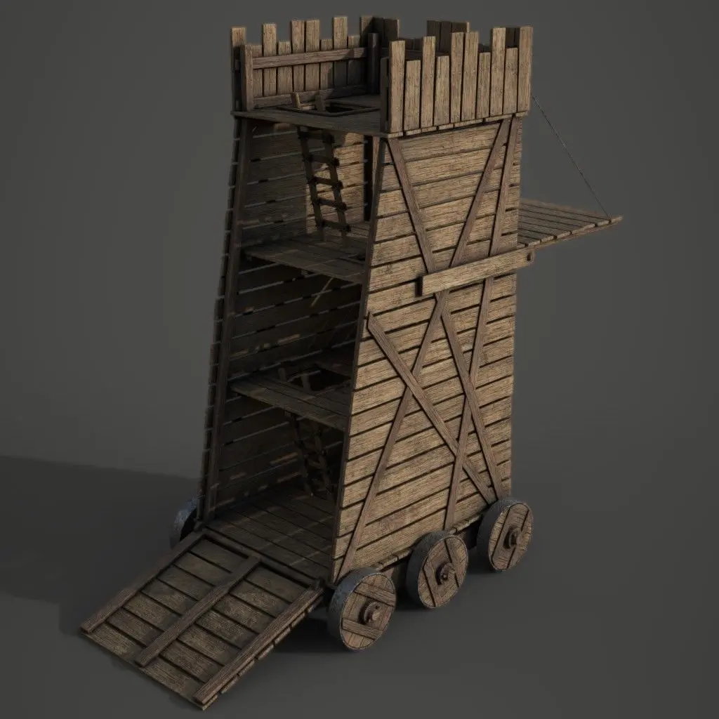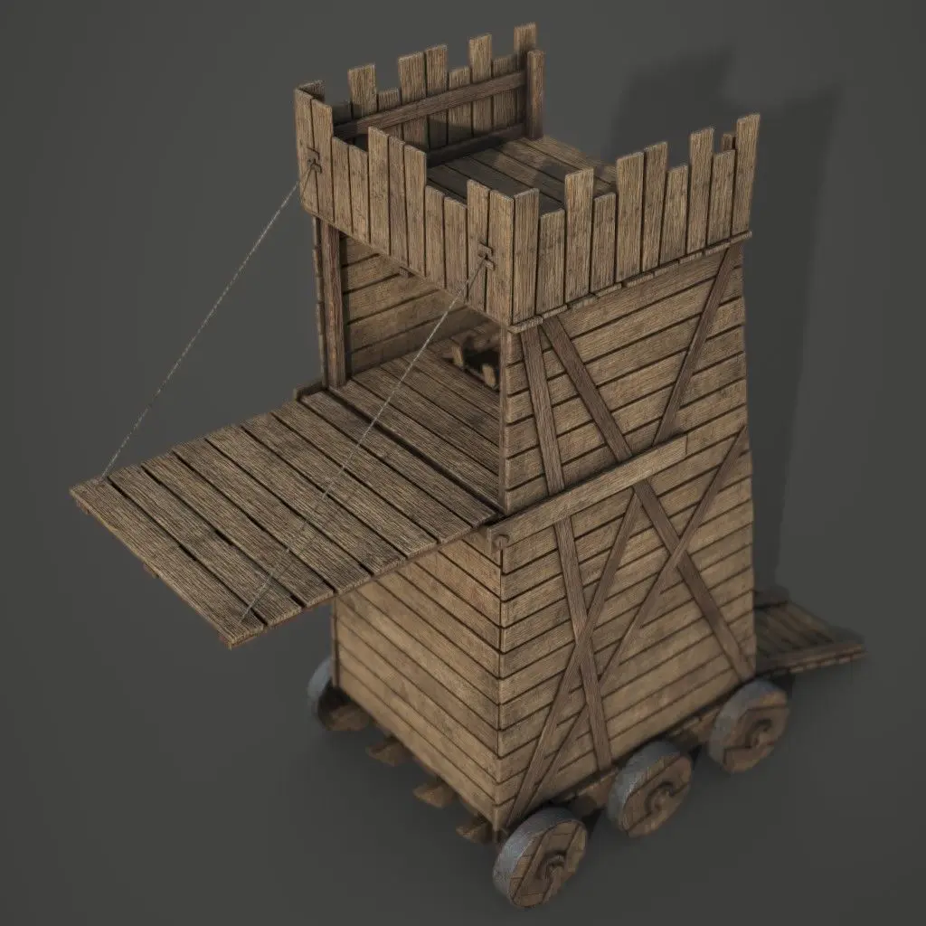 Game ready medieval style siege tower made using high to low poly baking. The entire model is on the same 1to 1 UV space. Both closed and opened versions of the tower are included in the downloads.