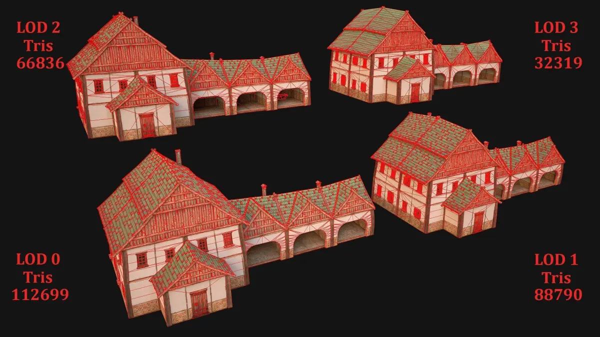 - Edges: 150422(LOD0),135457(LOD1),101304(LOD2),52205(LOD3).