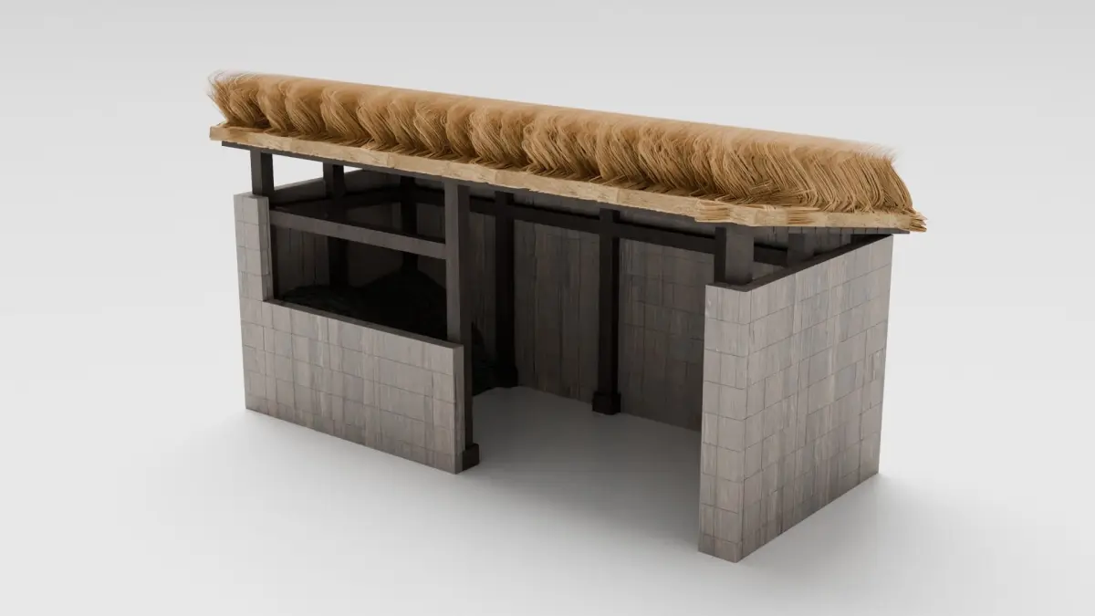 This pack features a medieval stable, ideal for historical or fantasy settings. It includes one detailed asset with high-quality textures. Enhance your project with this authentic piece, adding a touch of medieval charm to your scenes.