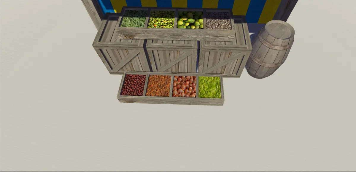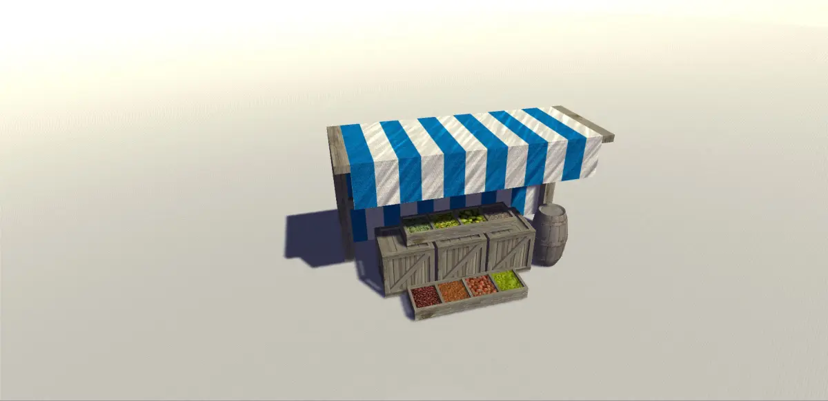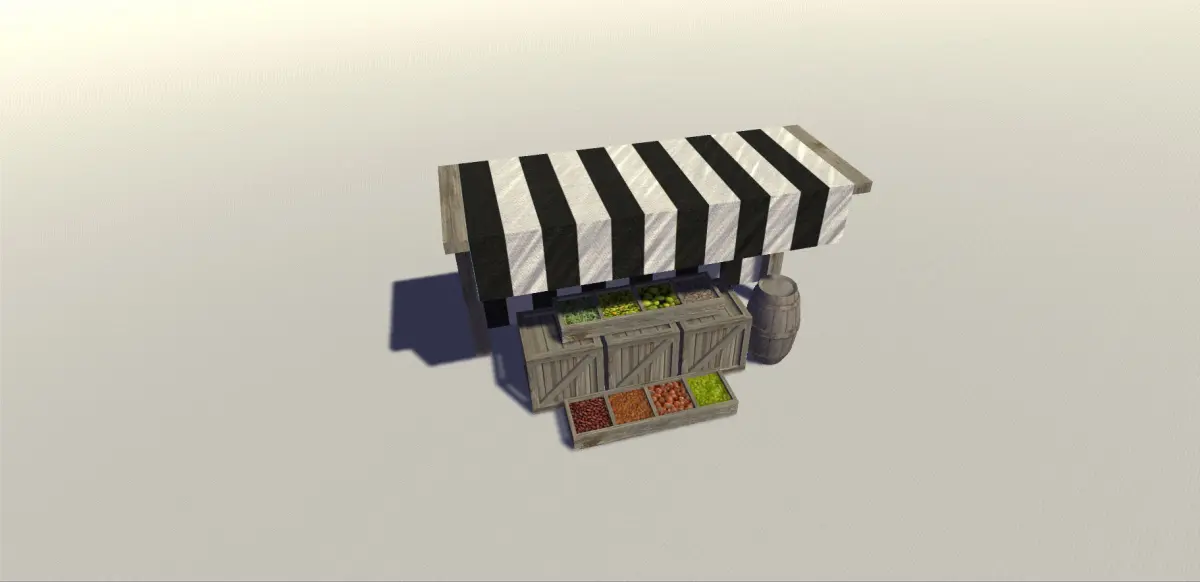 Medieval stall perfect for your medieval environment. It contains the base stall model with box, barrel and food models.Rendered in Unity 5.0