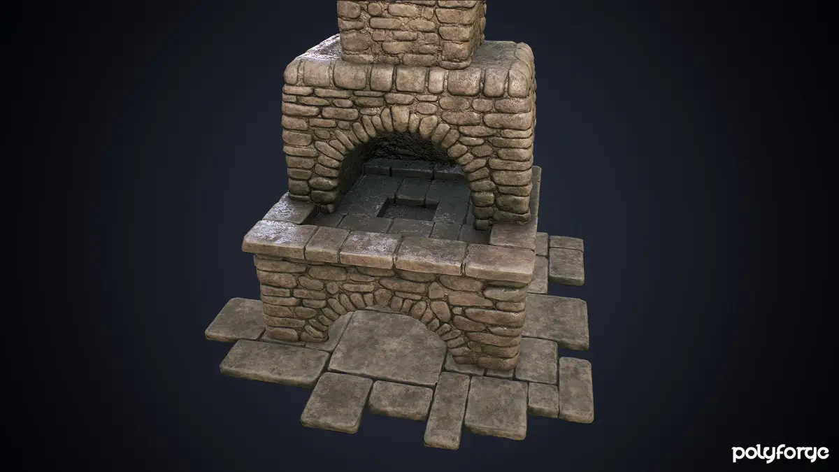 Medieval Stone Blacksmith Forge and Hearth Low-poly 3D model