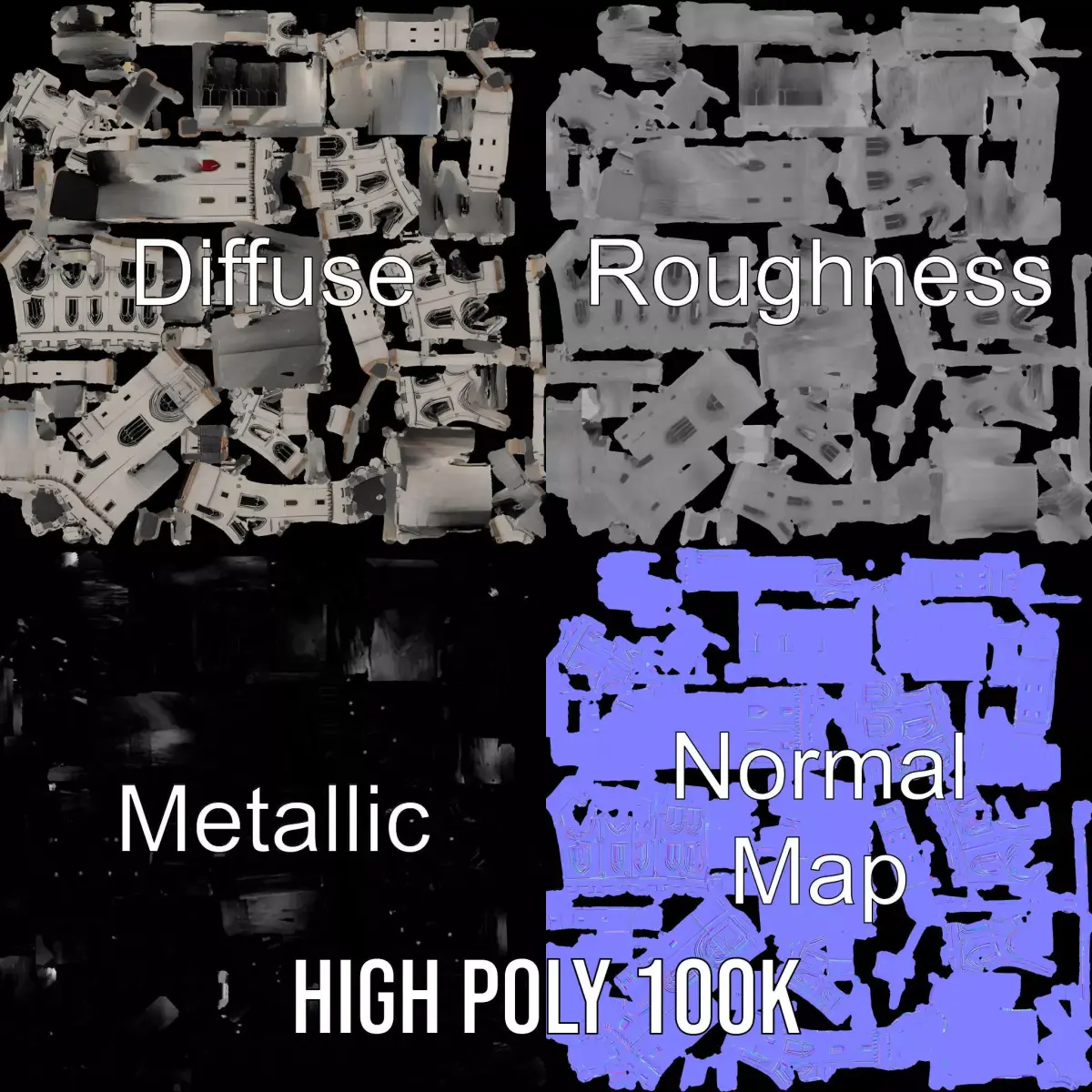 This medieval stone castle model is perfect for historical scenes, architecture visualization, or fantasy game environments. Each model has 3 levels of detail: low-poly (1000 triangles for mobile), middle-poly (10,000 triangles for environment), and high-poly (100,000 triangles), which allows for the use of this model in production rendering (such as 3ds Max, Maya, Cinema4D, Blender, Vray/Corona/Cycles, and all others), game engines (Unity and Unreal compatible), and interactive presentations, providing a choice of detail based on the LOD System principle. The model's textures are PBR, Diffuse, NormalMap, and reflection/roughness/metallic, which are suitable for any modern rendering engine. All models are accurately unwrapped with no overlapping UVs. All textures are 4096*4096 in size. Please like and leave a comment for the model if you enjoyed it.