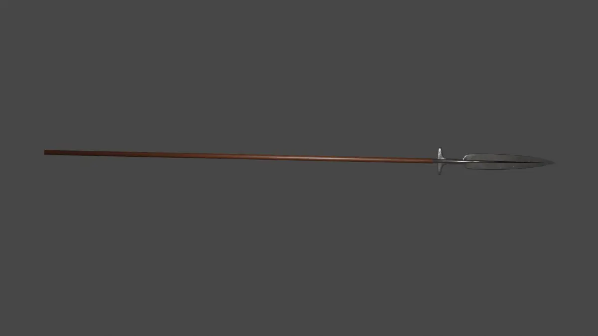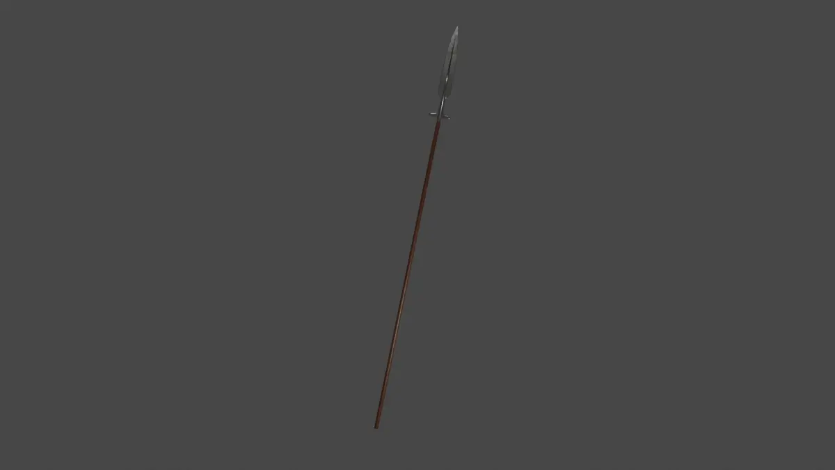 It is a long boar spear with medieval style, dark wood and brozen material.It has just 4 different parts with low poly setting (will not crash your blender when you move it XD)