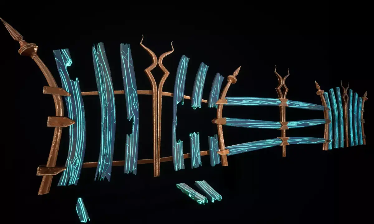 - Toxic blue-green wood – distinctive semi-stylized fantasy look