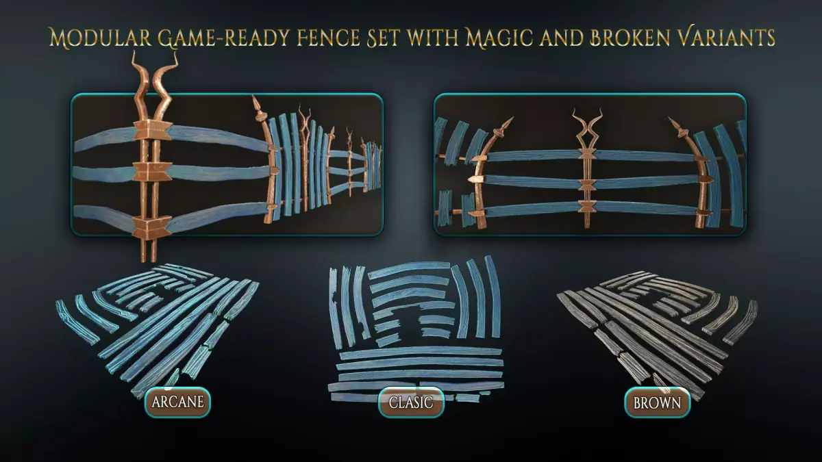 Bring authentic Gothic–Medieval charm to your environments with this semi-stylized modular fence pack — blending realistic details with artistic shapes. Perfect for castles, villages, or fantasy-inspired worlds.
