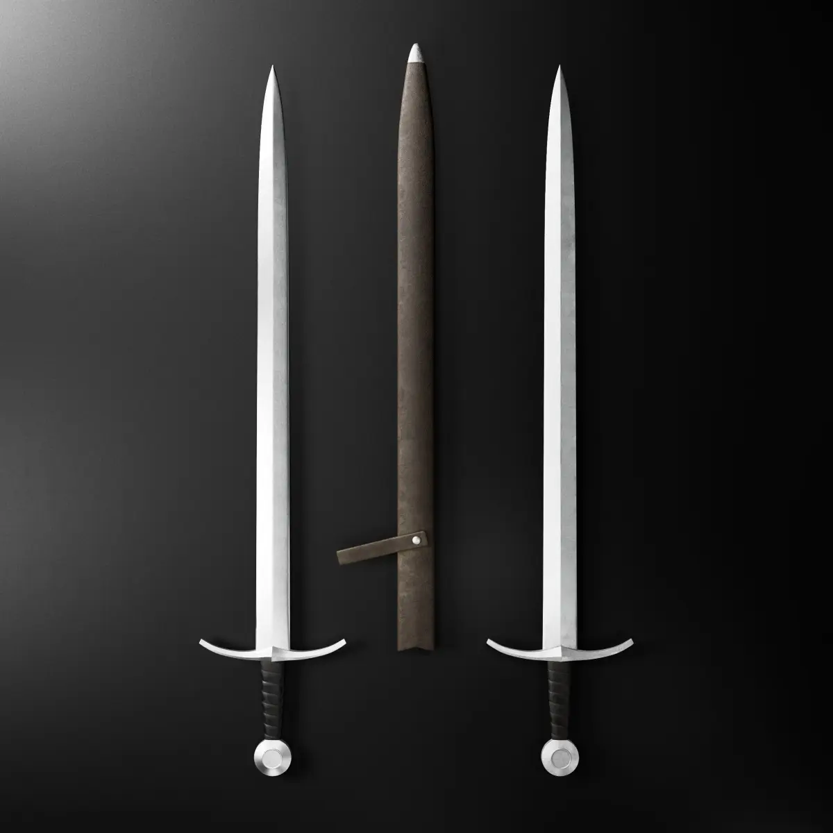 The metal sword with a black leather hilt.This beautiful and highly detailed model is perfect for any medieval or fantasy project and will add a touch of authenticity and realism to your scenes.Crafted by a skilled swordsmith, this sword features a sturdy metal blade that is perfect for battle or combat. The black leather hilt is not only comfortable to hold, but also adds a touch of elegance and sophistication to the weapon.Whether you are creating a video game, animation or simply need a high-quality weapon model for your 3D project, this sword is sure to impress. The model is fully textured, rigged, and ready to be animated, making it incredibly versatile and easy to use.With its intricate details, this sword is a must-have for any 3D artist or game developer. Don't miss out on the opportunity to addthis stunning weapon to your collection!