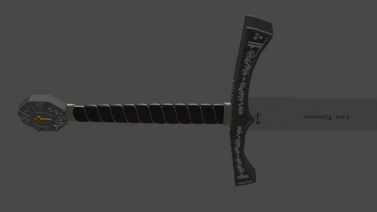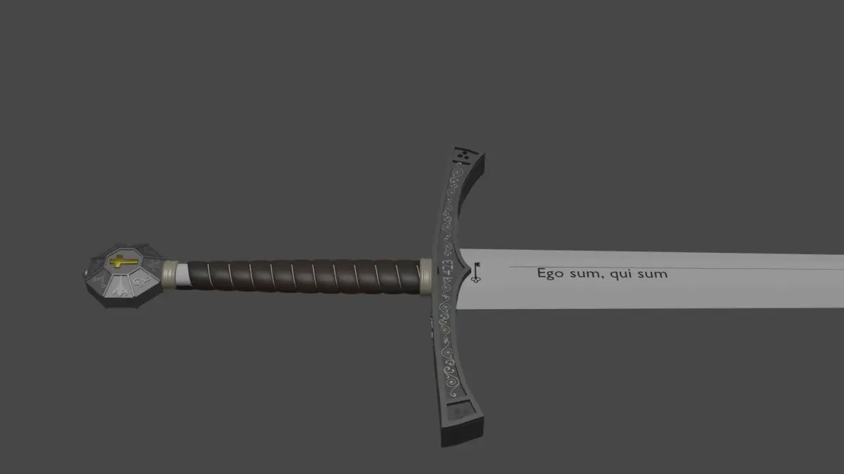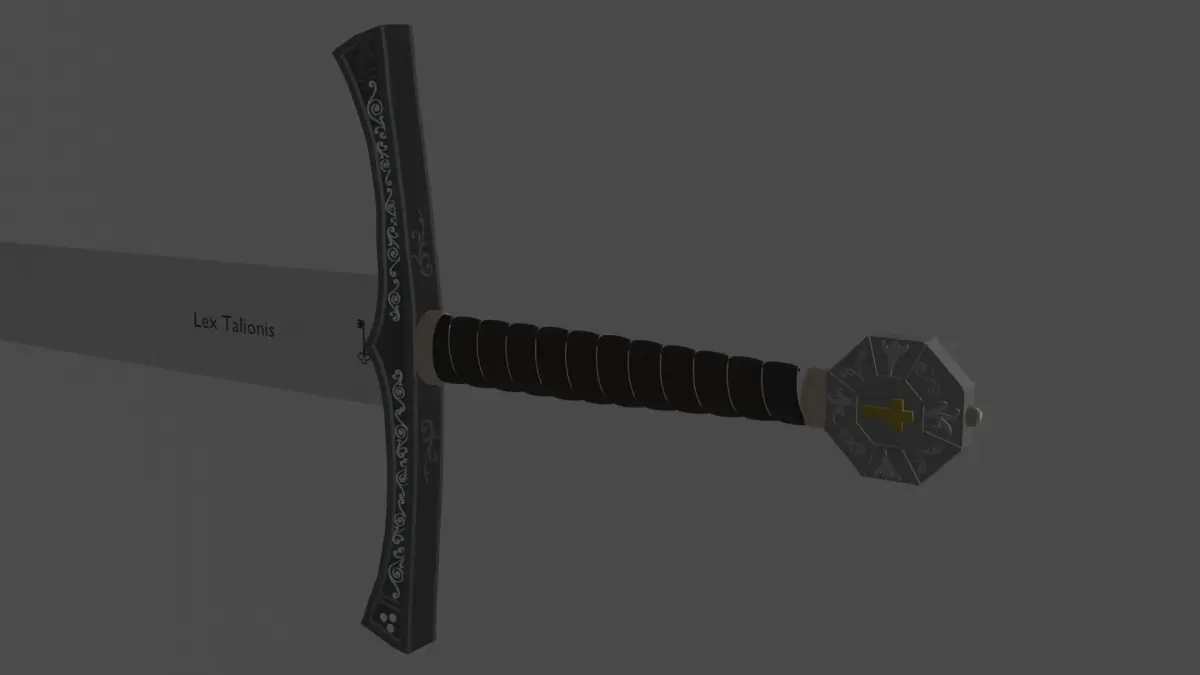One hand short medieval sword from 1423.On sword are two latin quotes first is Ego sum, qui sum = I am who I am || and second is Lex Talionis = The law on retaliation.Sword handle is covered with leather.The sword is composed of 40 objects.(This is my second modeled model in blender. Please give me advice on how to improve my skill modeling)
