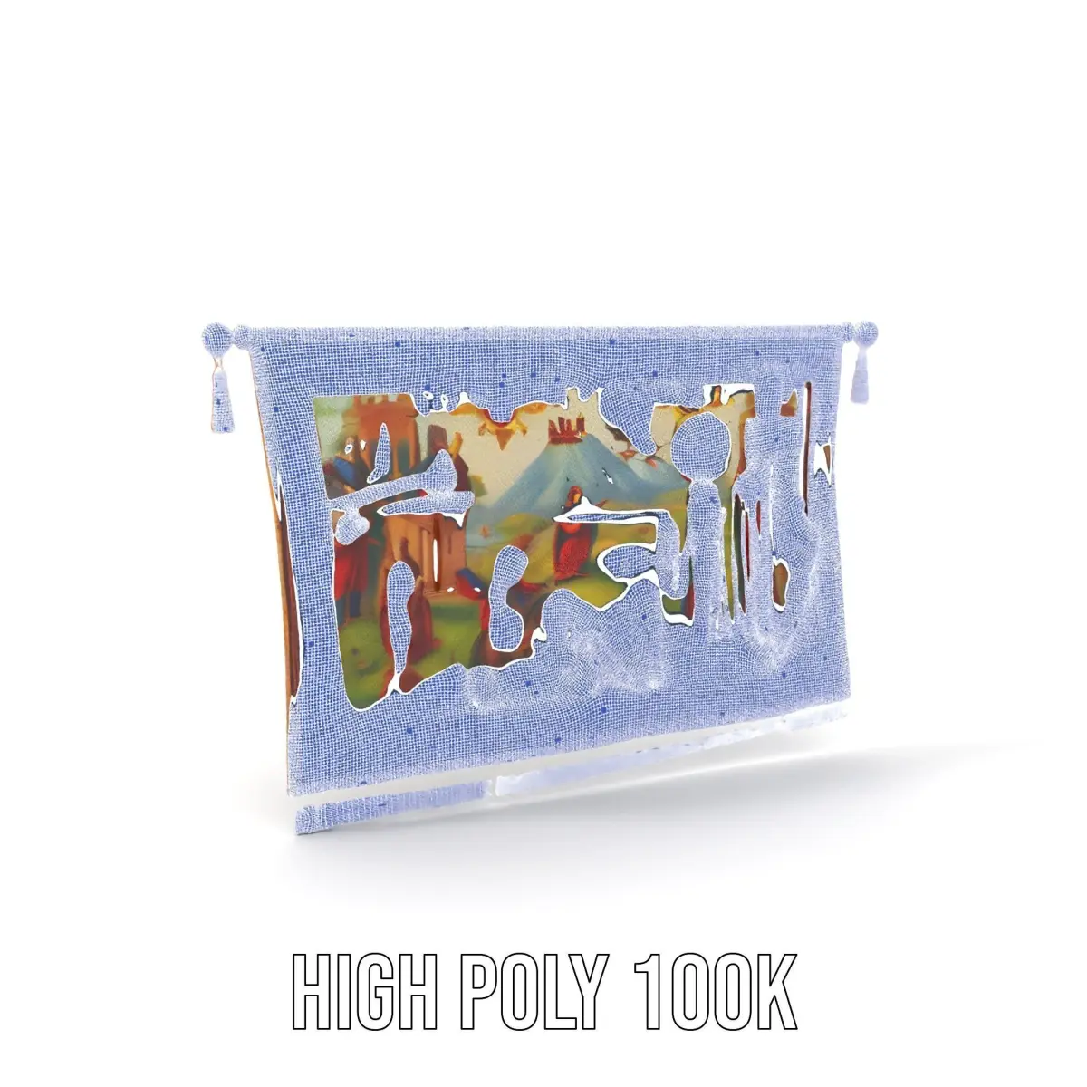 This Medieval Tapestry Model Pack features a stunning historical scene with detailed depictions of figures and architectures. The model comes in three levels of detail: low-poly for mobile with 1000 triangles, middle-poly for environments with 10,000 triangles, and high-poly for production rendering with 100,000 triangles. Ideal for period piece animations, architectural visualizations, and interactive museum displays.