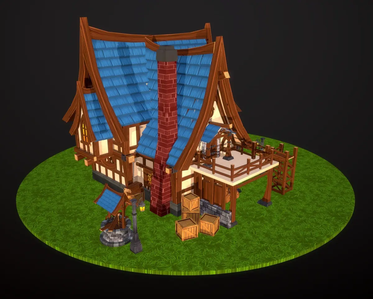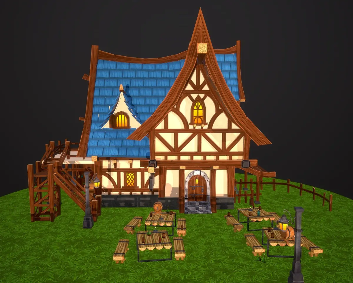 Fully hand painted tavern model for your project. (Exterior only)