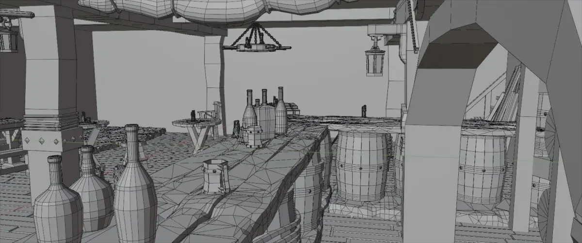 This is an interior view of a Lowpoly stylized Pirate Tavern containing more than 25+ assetsall the assets are hand-painted with the intention of stylizationThe scene is Low poly