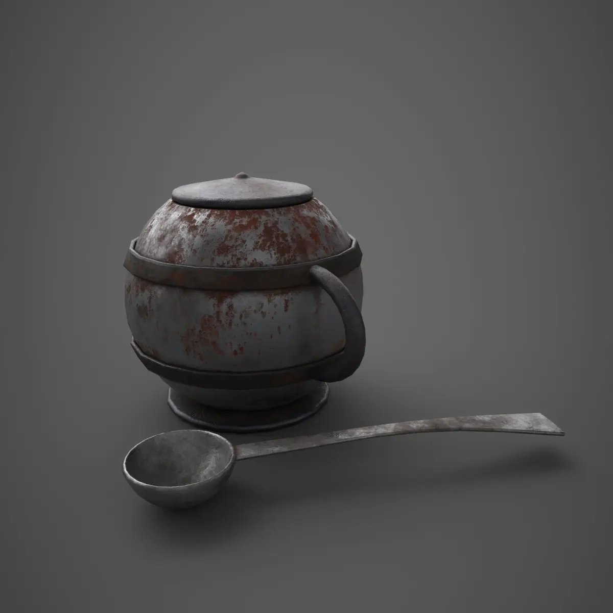 Medieval Tavern Soup pot and Spoon Free low-poly 3D model