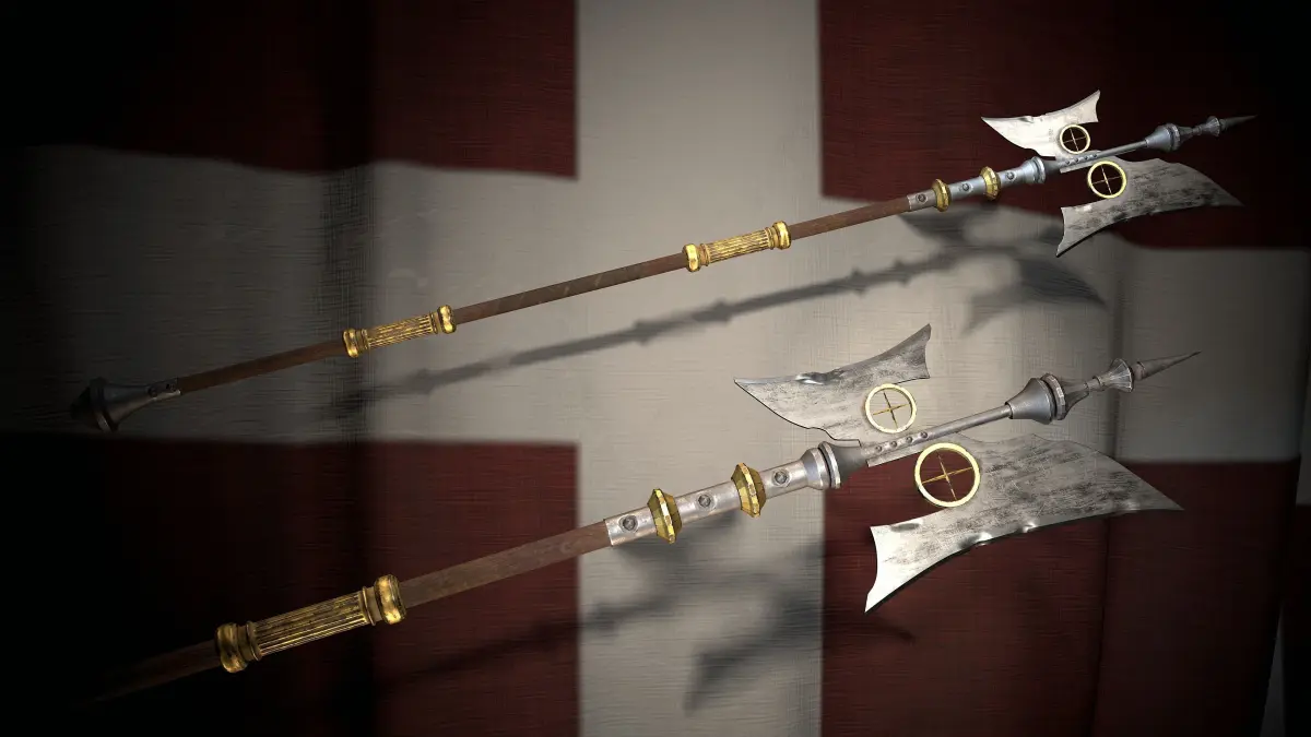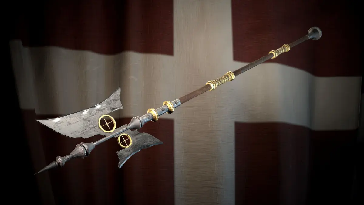 Game ready model of medieval templar two handed battle halberd. Templar-guards usually use halberds, also its fine for work in small groups battles . This is high quality model with detailed textures and various small surface details such as damage, the texture of sharpened metal, wood fibers, etc.