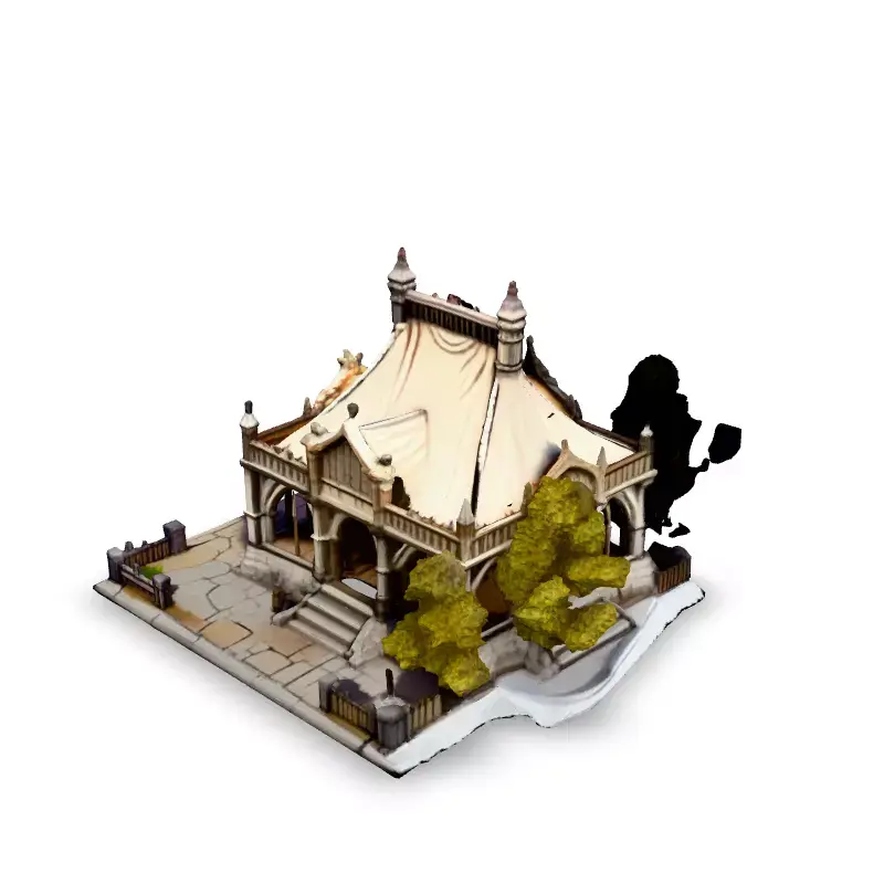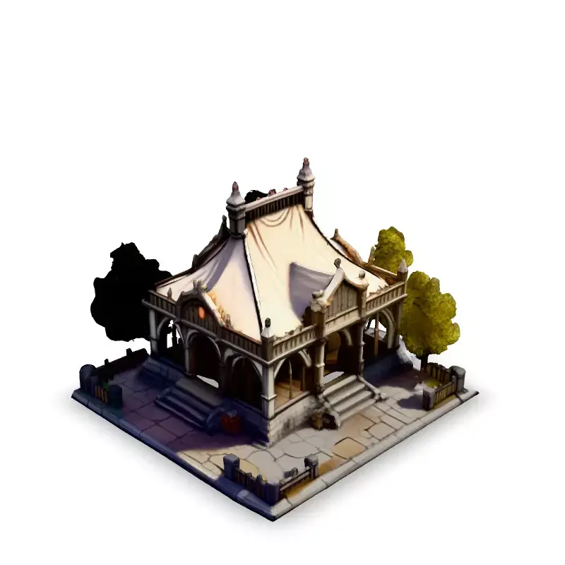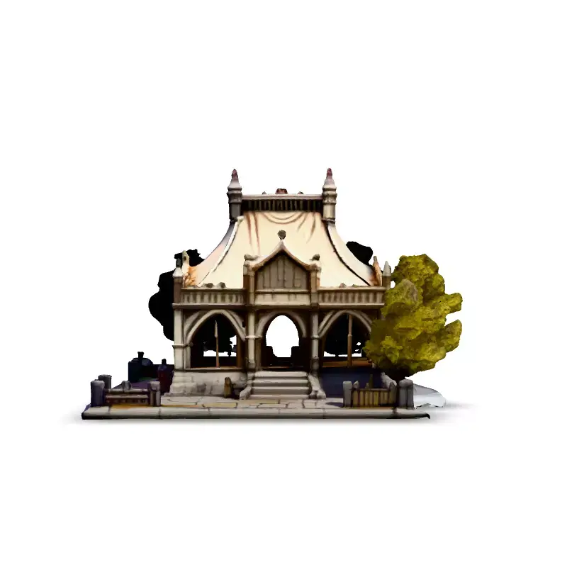 This 3D model depicts a medieval market building with a tent-like roof and stone archways. Ideal for game developers, especially those working on strategy, RPG, or simulation games, this asset adds a touch of historical authenticity to virtual worlds. It can also be used in architectural visualization, AR experiences, or even adapted for 3D printing. The model is available in multiple formats including FBX, OBJ, GLB, and STL. Optimized for real-time applications, this low-poly model is game-ready, with clean topology, and UV unwrapped. While not specifically high-poly, the model's detail is well-balanced for performance. It includes PBR textures for realistic rendering, making it adaptable to various lighting conditions. Further enhancements through subdivision are also possible. Whether populating a bustling marketplace scene or serving as a focal point in a historical diorama, this versatile 3D model is a valuable addition to any digital artist's toolkit.
